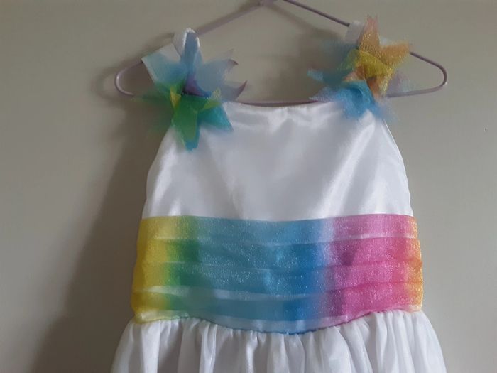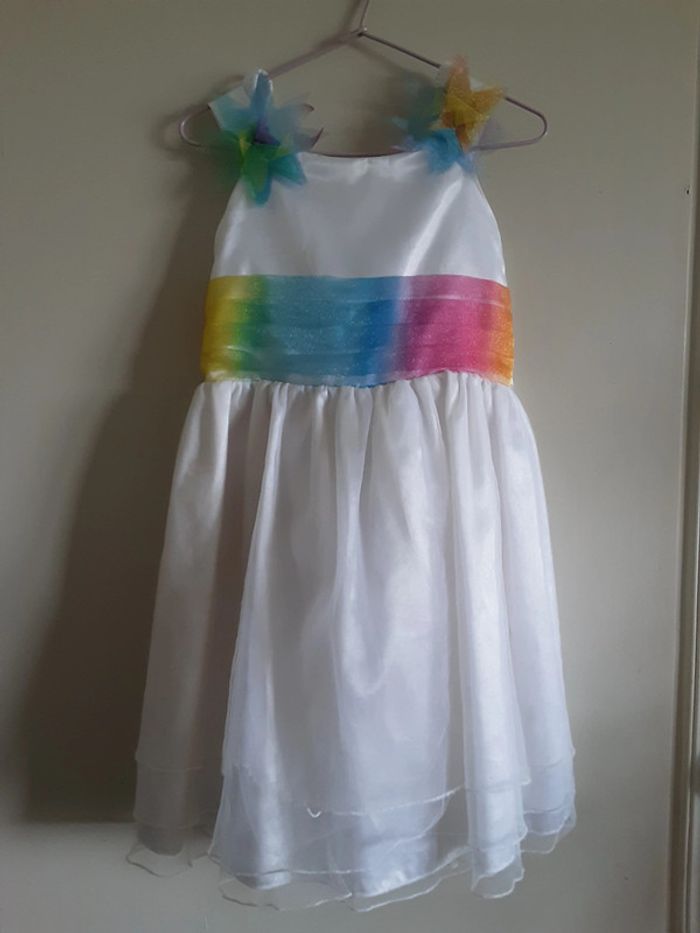 Robe de cérémonie 3 ans Ceinture et fleurs arc-en-ciel Quelques accrocs dans le voilage qui ne se voient pas portée, voir photos 4 et 5 #3anshypnose156 #bapteme #mariage #communion #pacs #arcenciel #fleurs