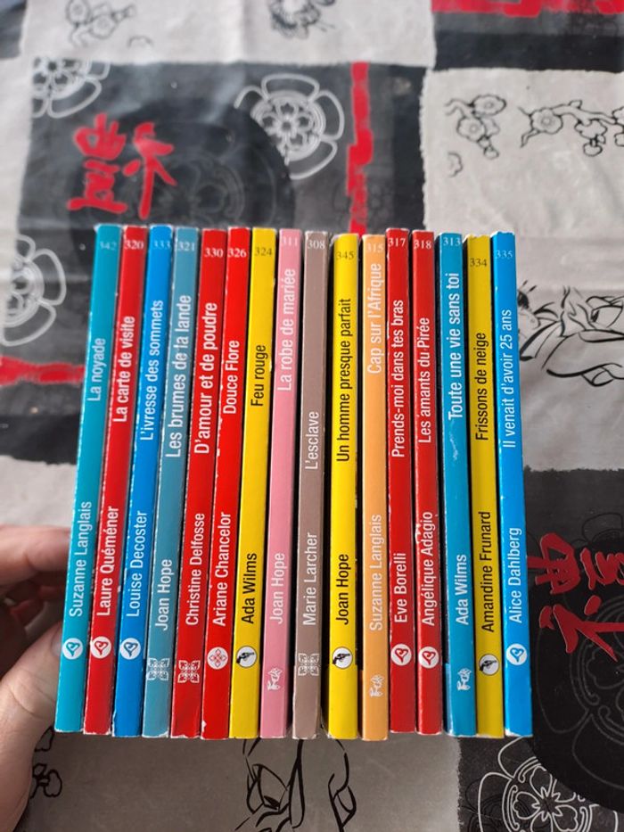 Lot de 16 livres Collection Nous deux style Harlequin. Numéro 308, 311, 313, 315, 317, 318, 320, 321, 324, 326, 330, 333, 334, 335, 342, 345. Possibilité de scinder le lot suivant vos numéros manquants. Historique, émotion, suspense, passion. Très bon état