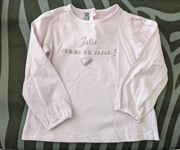 Tee-shirt fille rose à manches longues Taille 86 cm / 18 mois à 2 ans - photo numéro 1