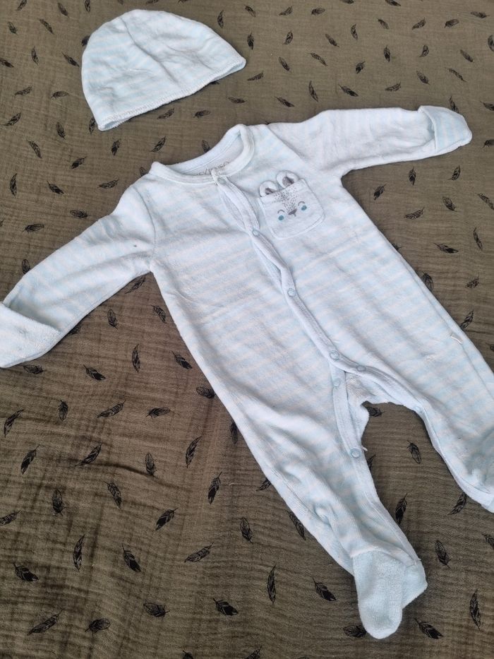Ensemble pyjama bebe Bonnet + Pyjamas velour Taille 1 mois Porté à fois, excellent état