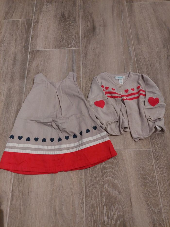 📖 Ensemble composé d'une robe à bretelles et d'un gilet. Motifs ❤ 🏷 Obaïbi 📏 6 mois 🛍 D'autres articles de la même taille visible dans mon dressin avec #6moisaurelilou34