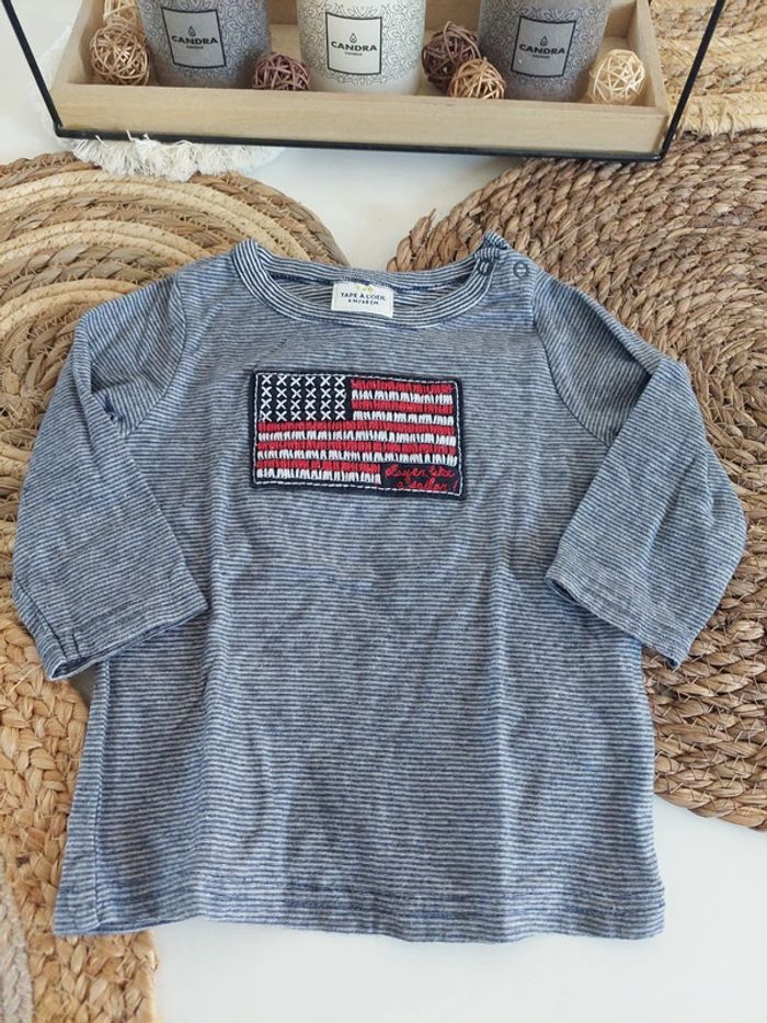 T-shirt manches longues avec 🇺🇲 "brodé" dessus. 2 pressions sur l'encolure pour faciliter l'enfilage. Tape à l'oeil TAO, 6 mois, 68cm #6moisaurelilou34