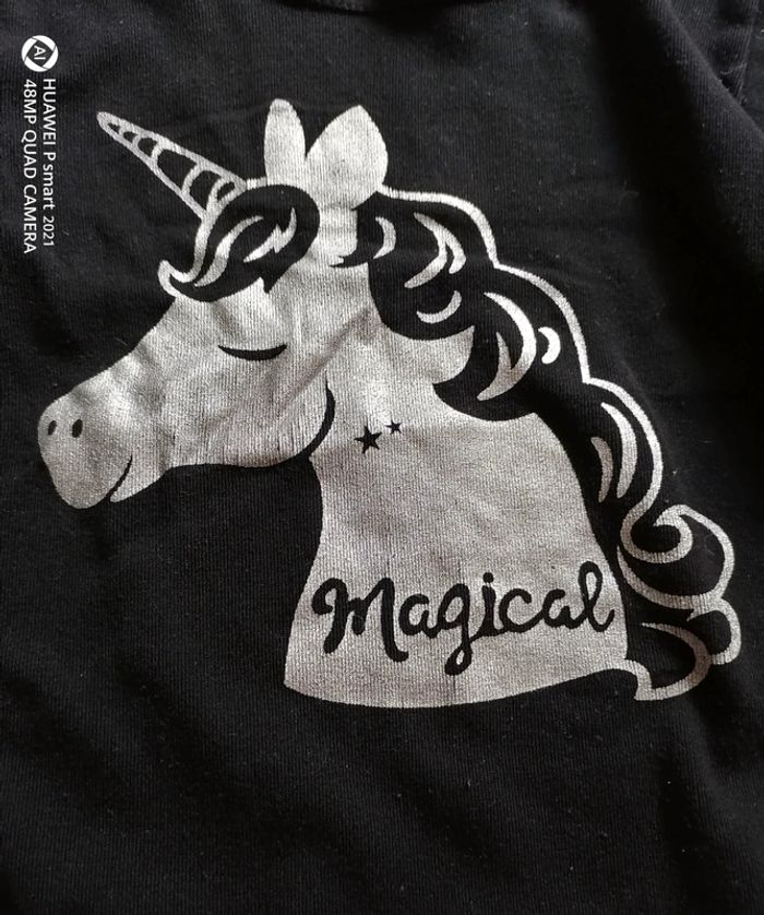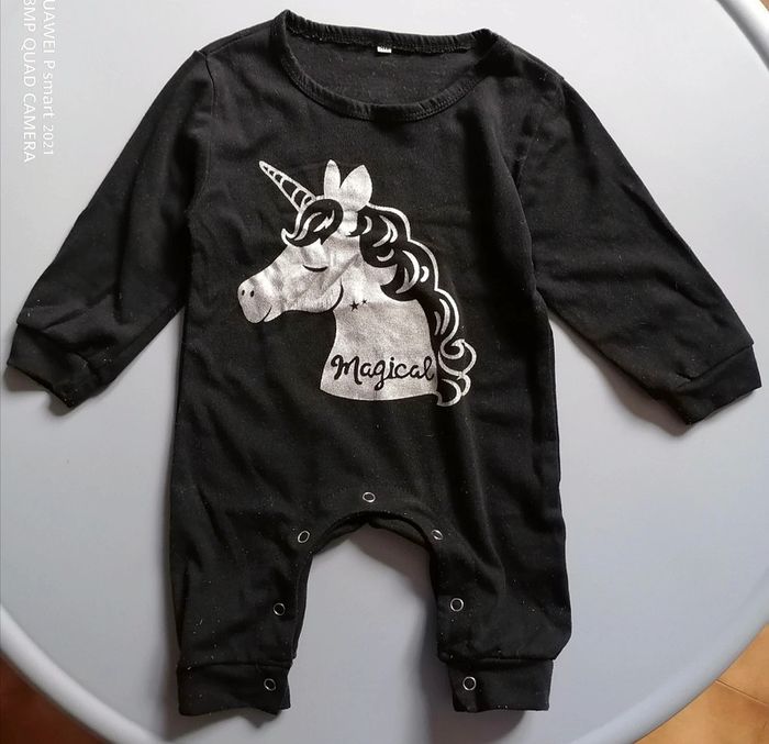 #romantictbe #romantic12mois Combinaison noir imprimée licorne argenté. Unisexe, très bon état