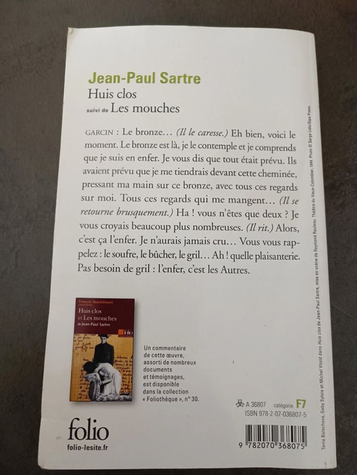 Livre huit clos suivi de les mouches Bon état coin légèrement abîmé uniquement
