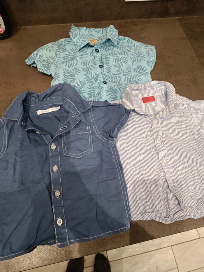 Lot de 3 chemises été 12 mois Boite a malice Gémo et devil child (note 18 mais taille 12 mois pour celle ci) Tbe Super pour l'été