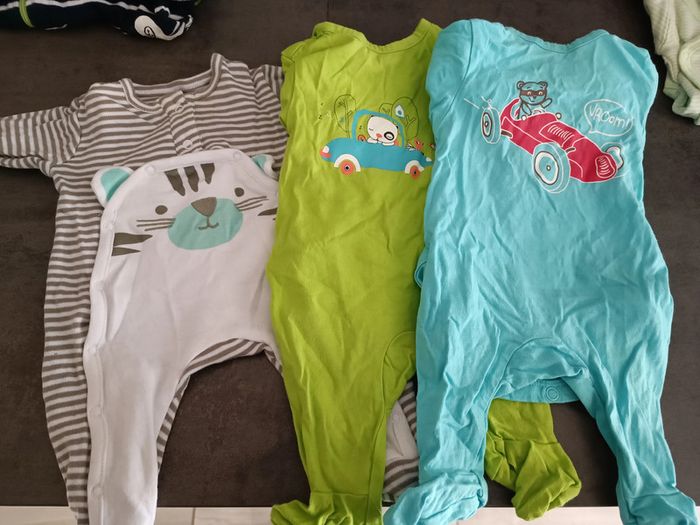 Lot comprenant 3 pyjamas léger 4 bodies manche longue ouverture sur le devant 1 bodie manche courte Tbe