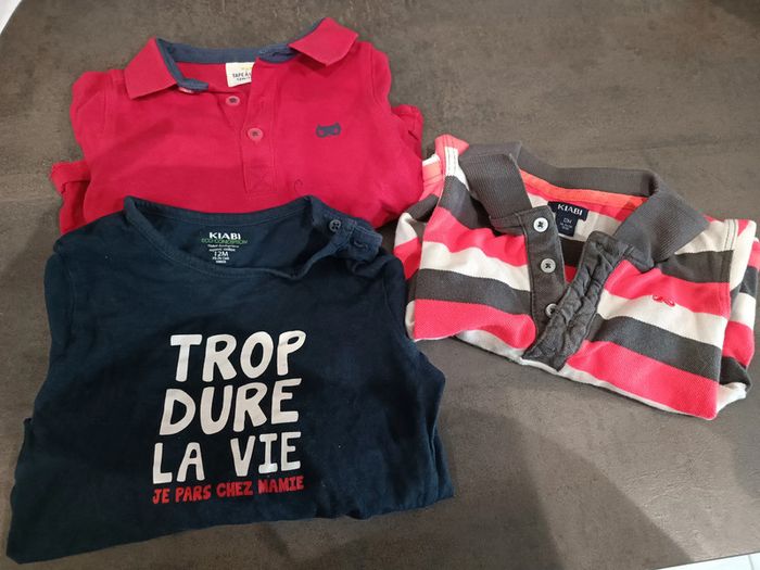 Lot manche longue 12 mois Deux polo un Kiabi Un tape a l'oeil Un t-shirt manche longue 12 mois Kiabi Tbe