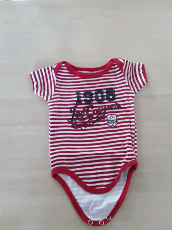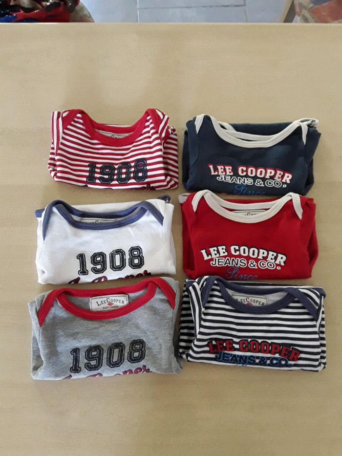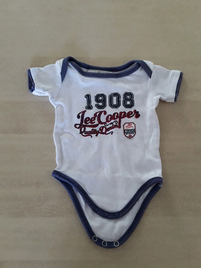 Lot de bodies été à manches courtes de marque Lee Cooper. Etiquettés 6 mois mais correspondent à un 3 mois Très bon état. Le flocage de 2 bodies est très légèrement craquelé(cf photos) D'autres articles de même taille disponibles. #melaniep3moisgarçon
