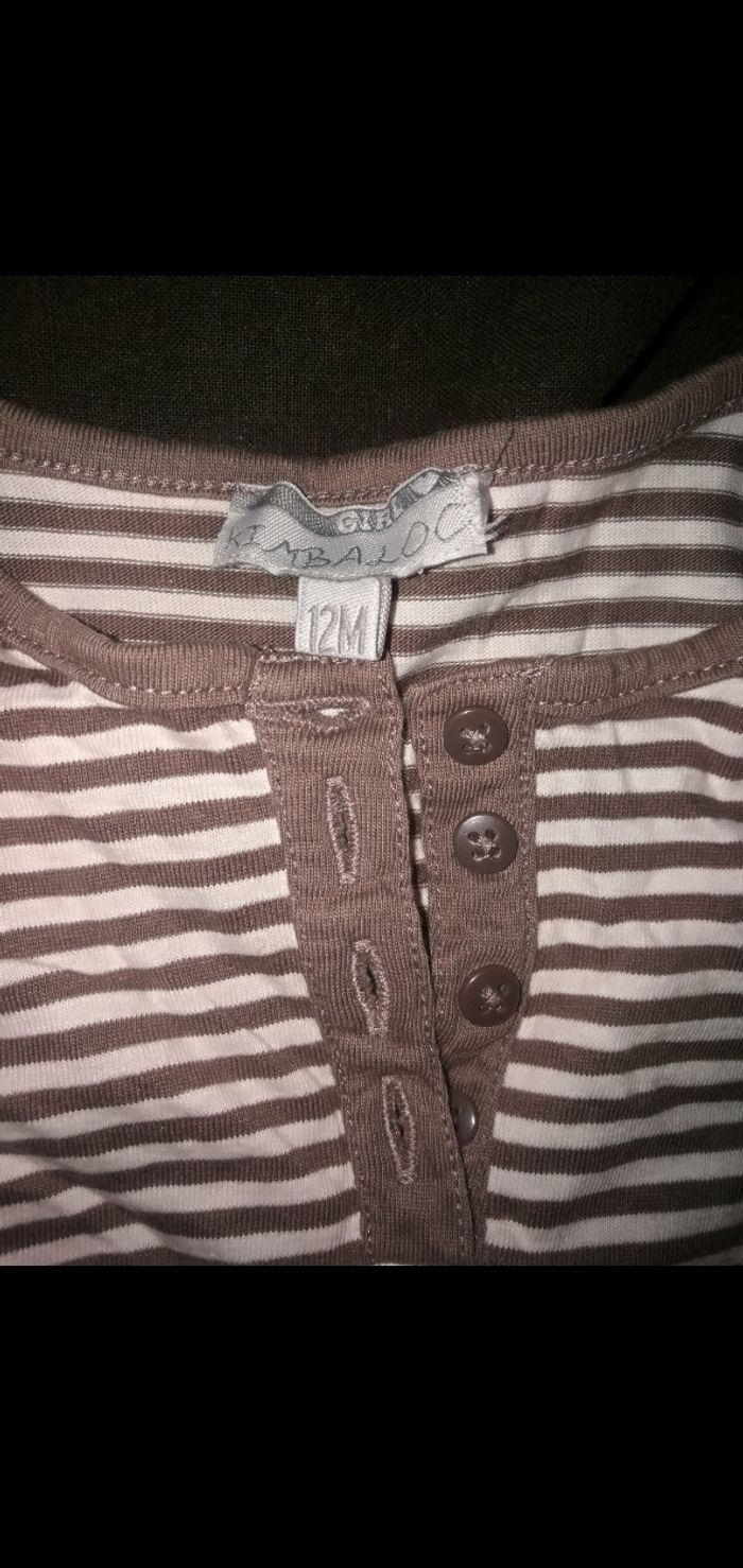 Tee shirt 12 mois Manches longues rayé Blanc/taupe kimbaloo