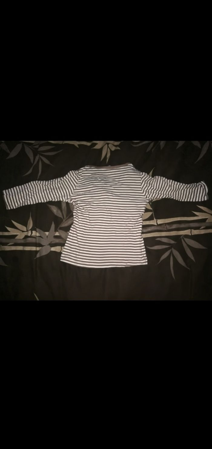 Tee shirt 12 mois Manches longues rayé Blanc/taupe kimbaloo - photo numéro 3