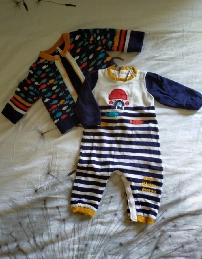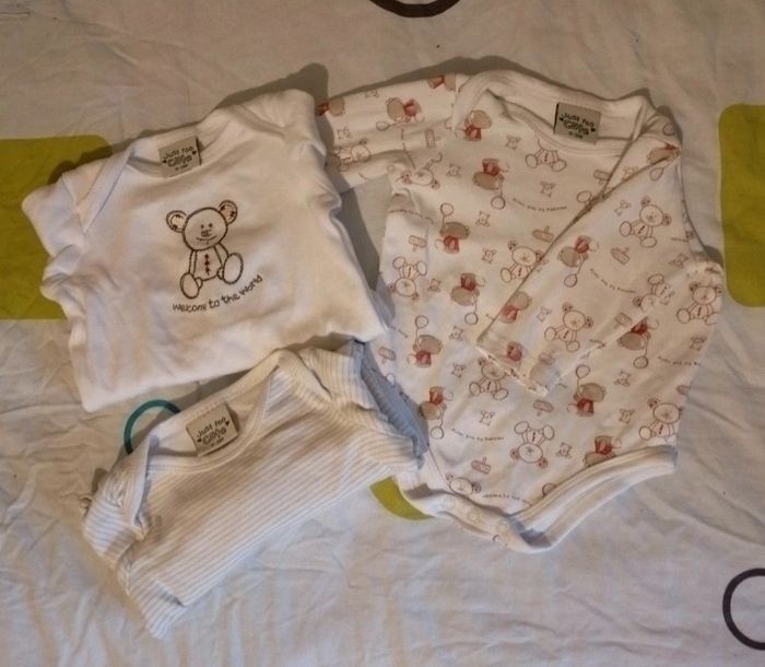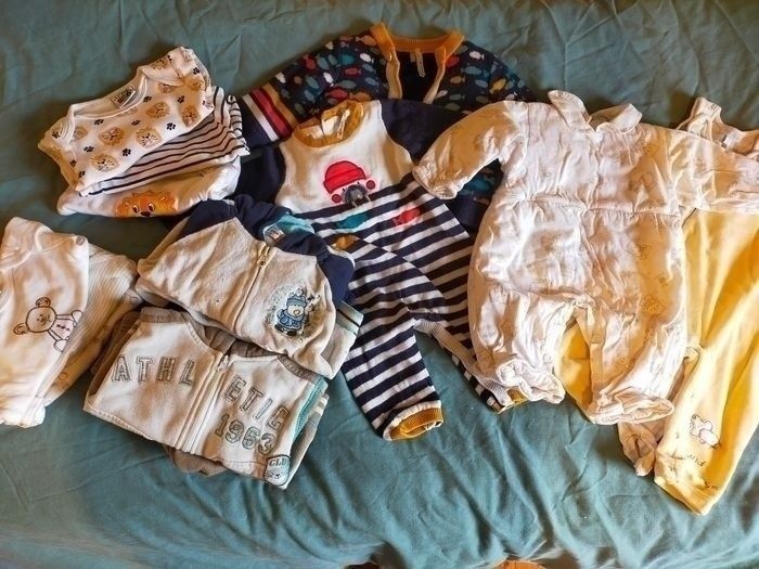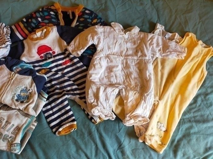 Lot bébé 3 mois 6 bodies manches longues 1 ensemble 2 joggings (quelques bouloches) 2 genouillères épaisses et 1 fine