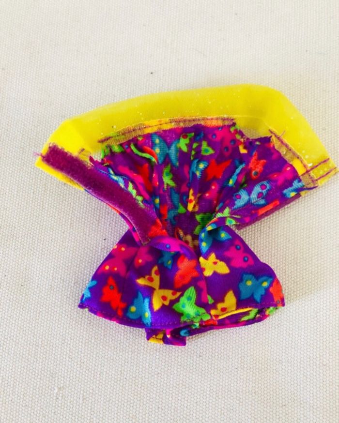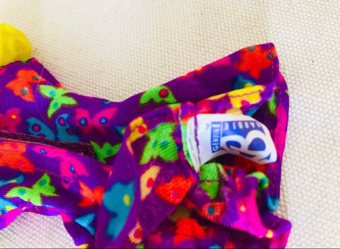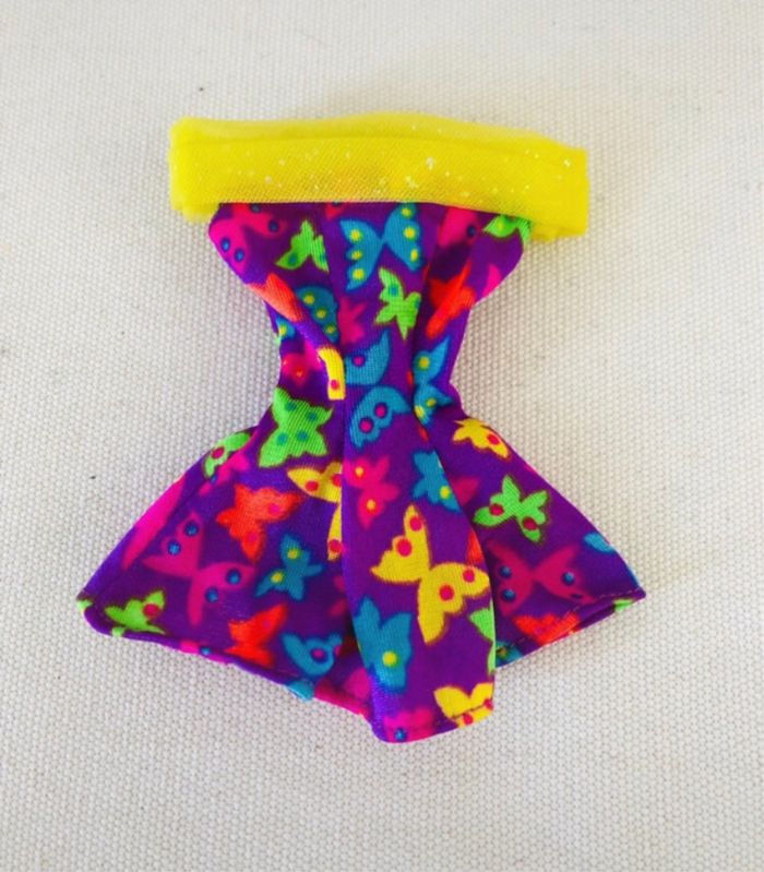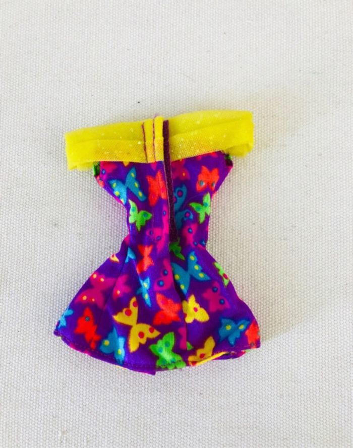 Achat aujourd’hui ? 👉🏻 Départ du 📦 demain ! Robe pour barbie Genuine Motif papillons Violet et jaune Tenue festive pour poupée Vintage années 90 Fille enfance jouet jeu Retrouvez tous les produits barbie que je vends : #barbiemg