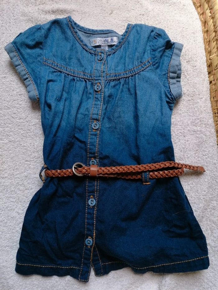 Robe hyper légère imitation jean, tie&dye. La petite ceinture tressée avec qui change tout ! Ecriture au stylo sur l'etiquette. #po1yn_6mois