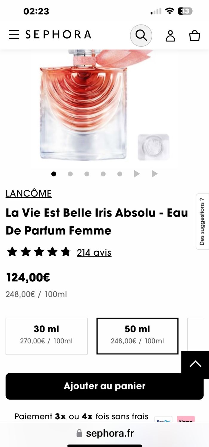 Eau de parfum lancome la vie est belle iris absolu 50 ml neuf avec emballage