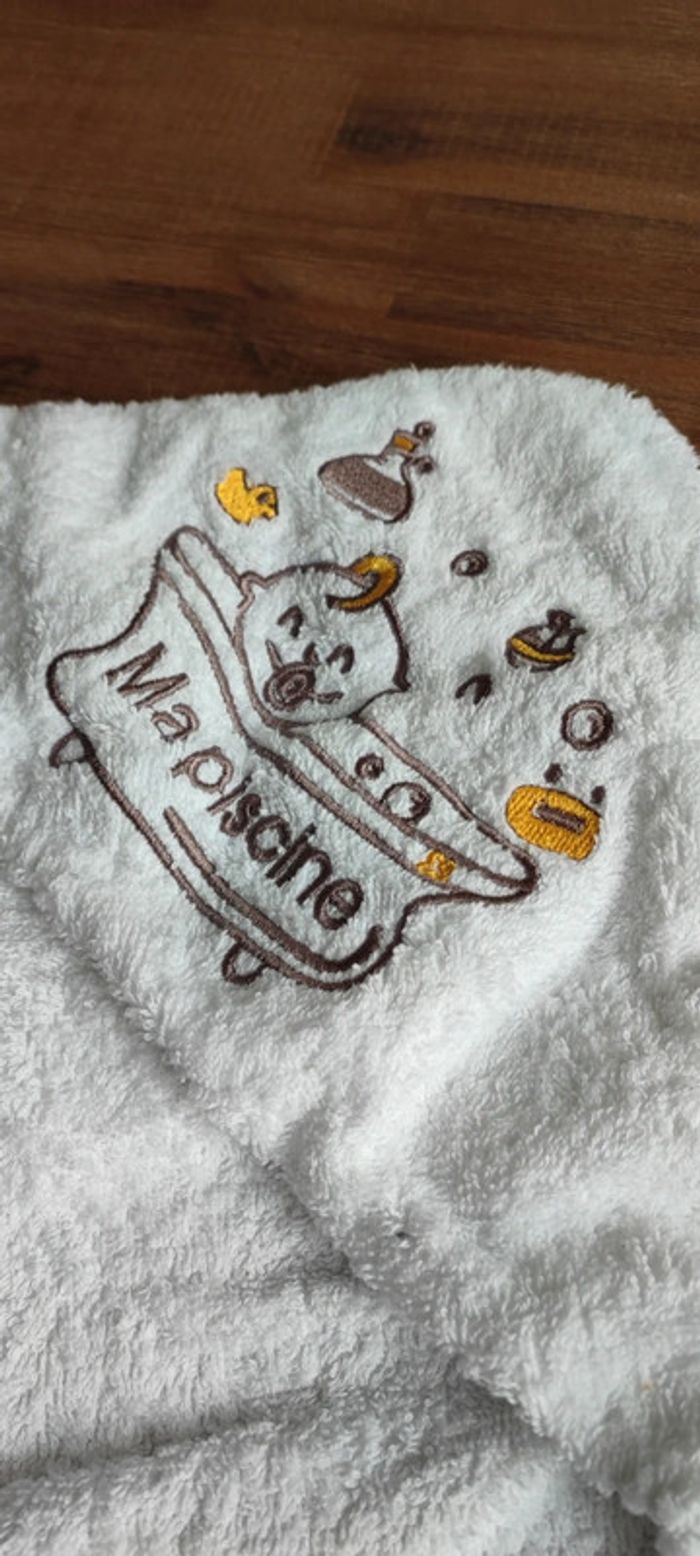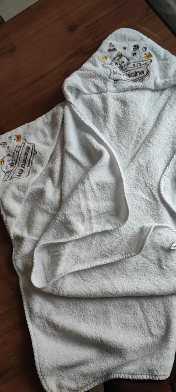 2 sorties de bain Blancs Une utilisée quelques fois, l'autre neuve Carrées avec un coin capuche 60 cms 100% coton Inscription Ma piscine Très bon état Envoi rapide #cyboulette44divers