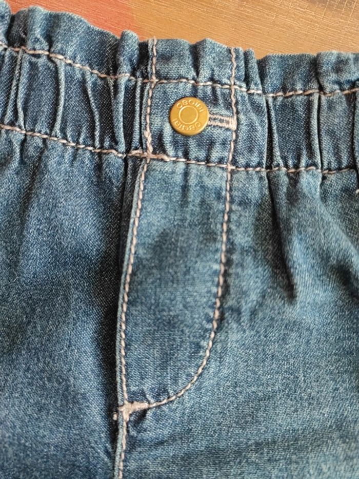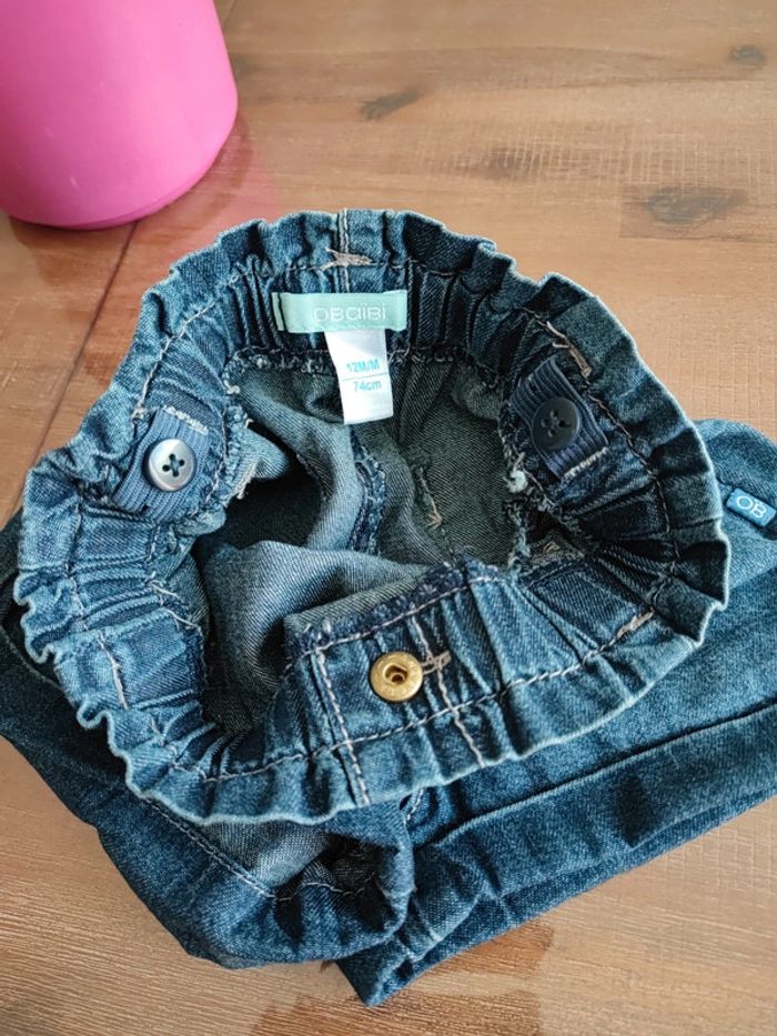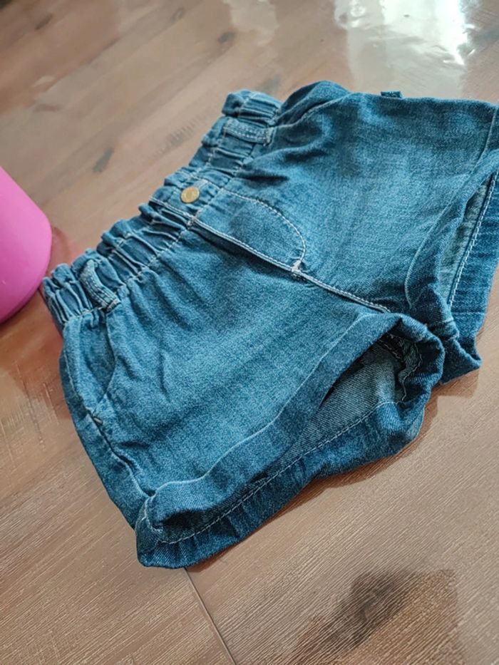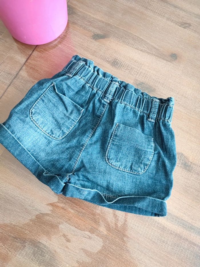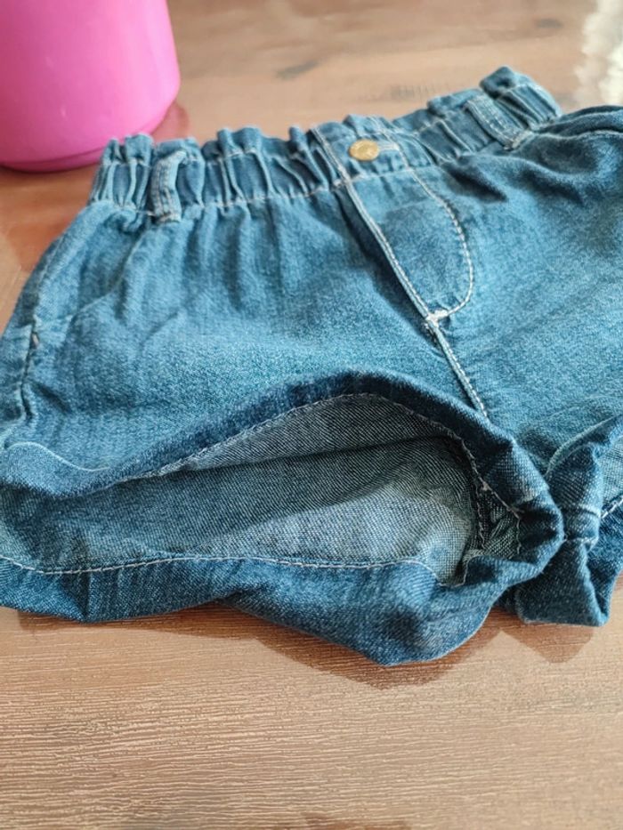 Mini short en jean bleu fin, léger Taille élastique et réglable Marque obaibi Taille 12 mois, 74 cms Peu porté Très bon état Envoi rapide #cyboulette44fille12mois