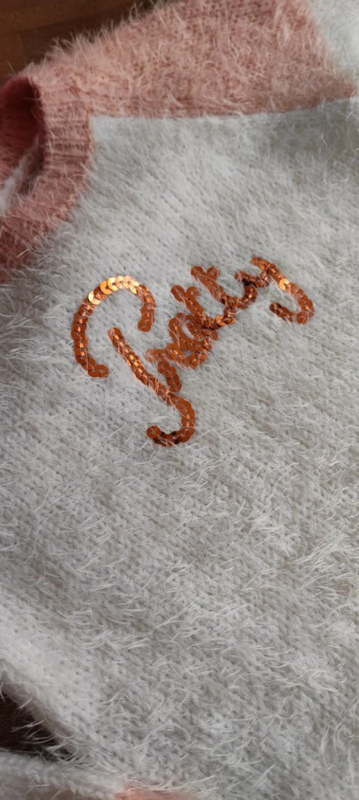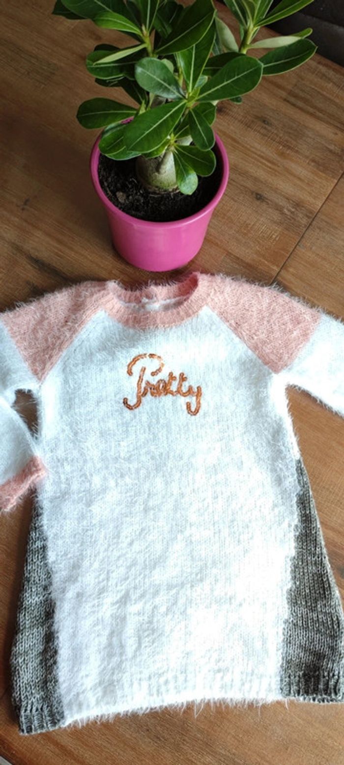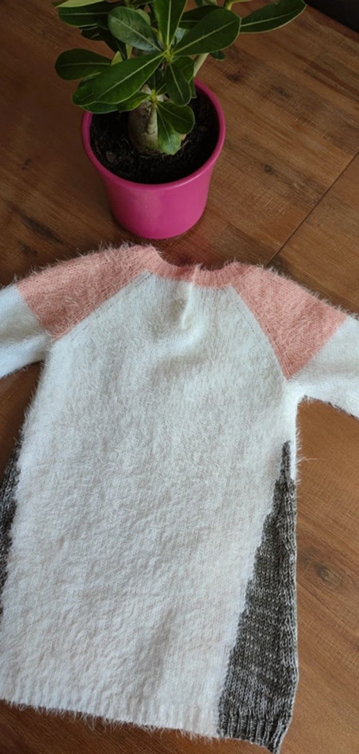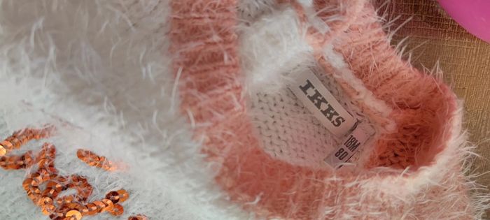 Robe-pull laine douce Blanc, rose clair et gris Inscription Pretty sequins cuivre sur le devant Jolie portée 2 boutons nuque pour ouverture État neuf Marque IKKS Taille 18 mois, 80cms Envoi rapide #cyboulette44fille18mois