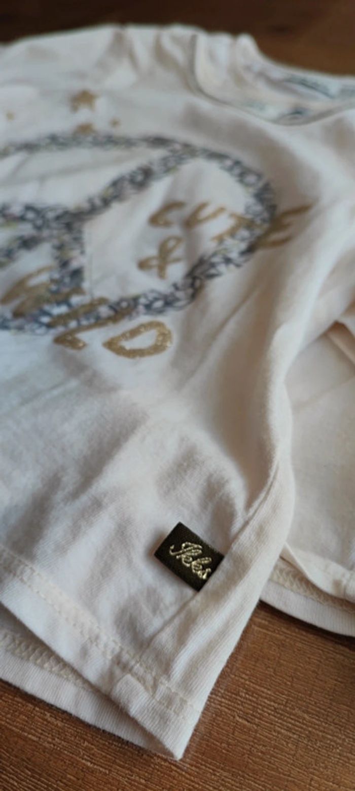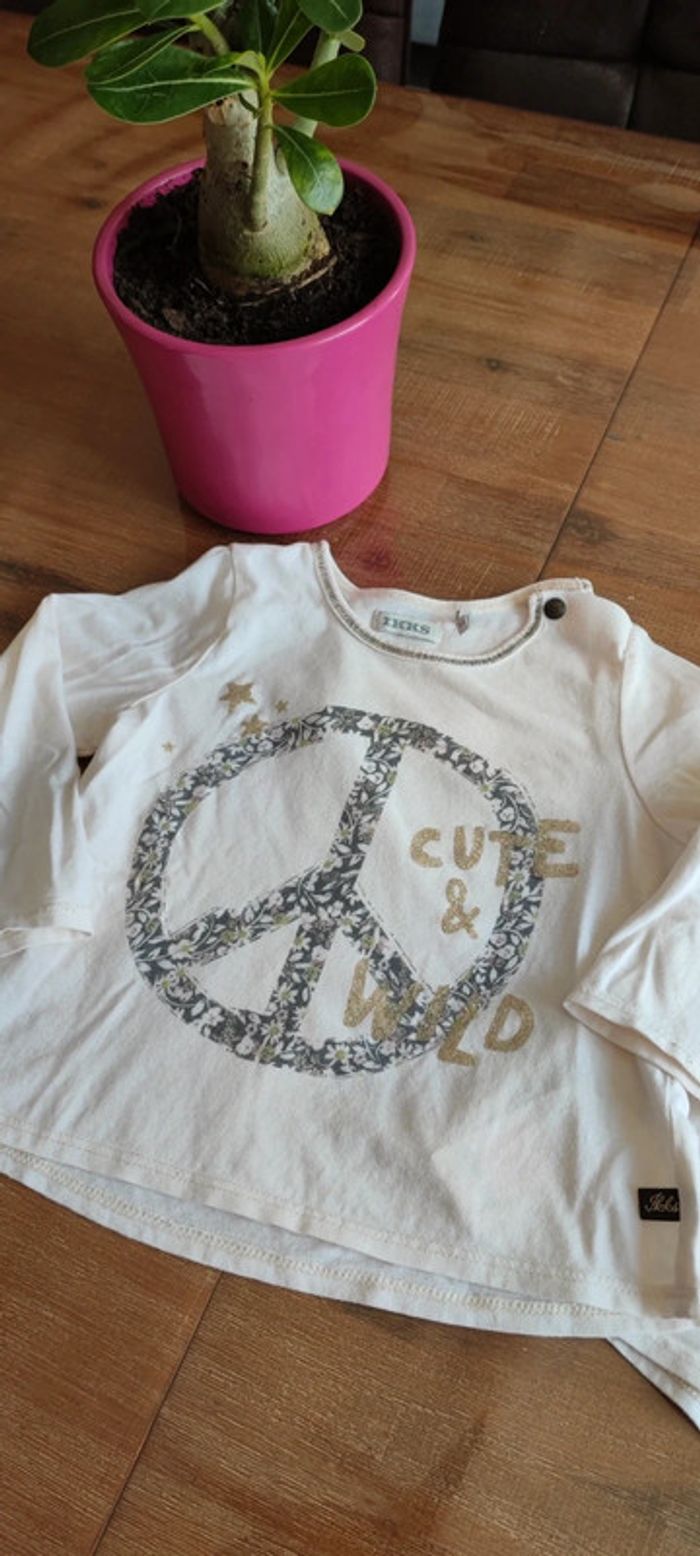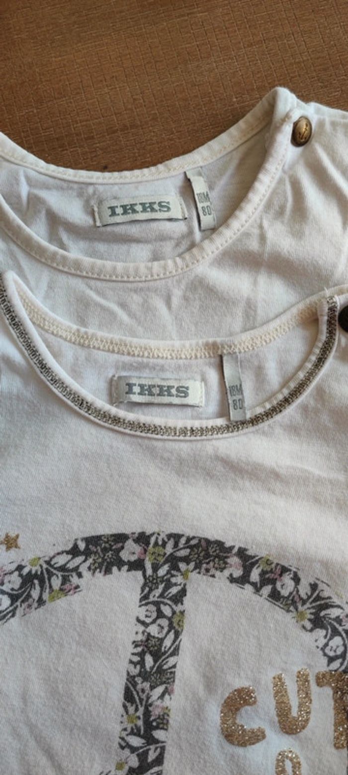 Lot 2 tee-shirts manches longues Couleur crème Motif tigre et logo peace and love Marque IKKS Taille 18 mois Bon état #cyboulette44fille12mois