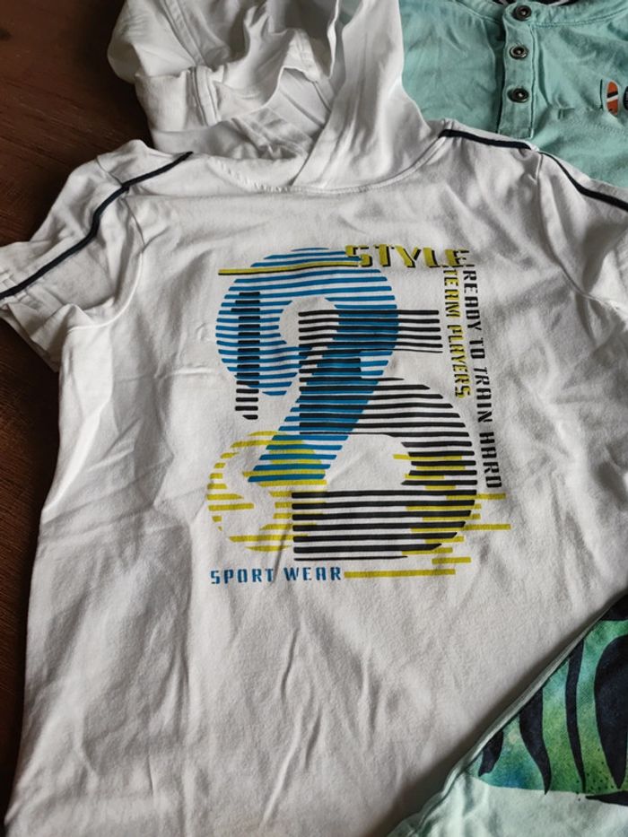 Lot de 4 tee-shirts Un blanc a capuche Un polo col mao bleu clair Un gris inscription summer trop Un turquoise avec zèbre coloré Marques Orchestra Taille 4 ans Très bon état Envoi rapide #cyboulette44garcon4ans