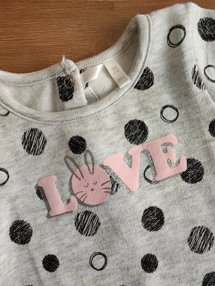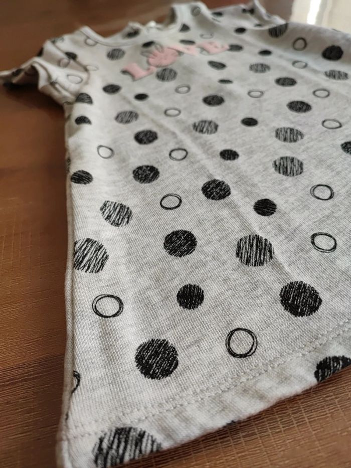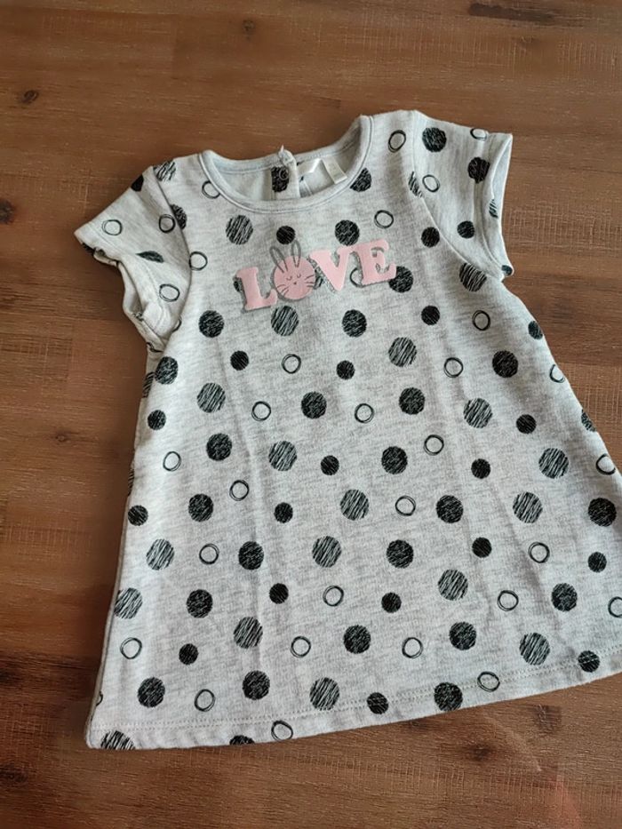 Robe manches courtes Gros clair avec pois noirs Inscription Love devant Boutons pressions haut du dos Marque Orchestra Taille 9 mois Très peu portées, état neuf #cyboulette44fille9mois