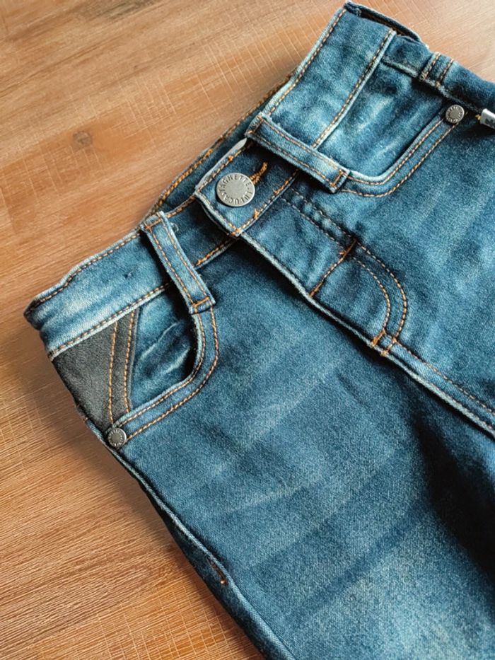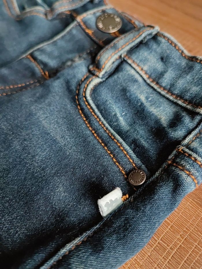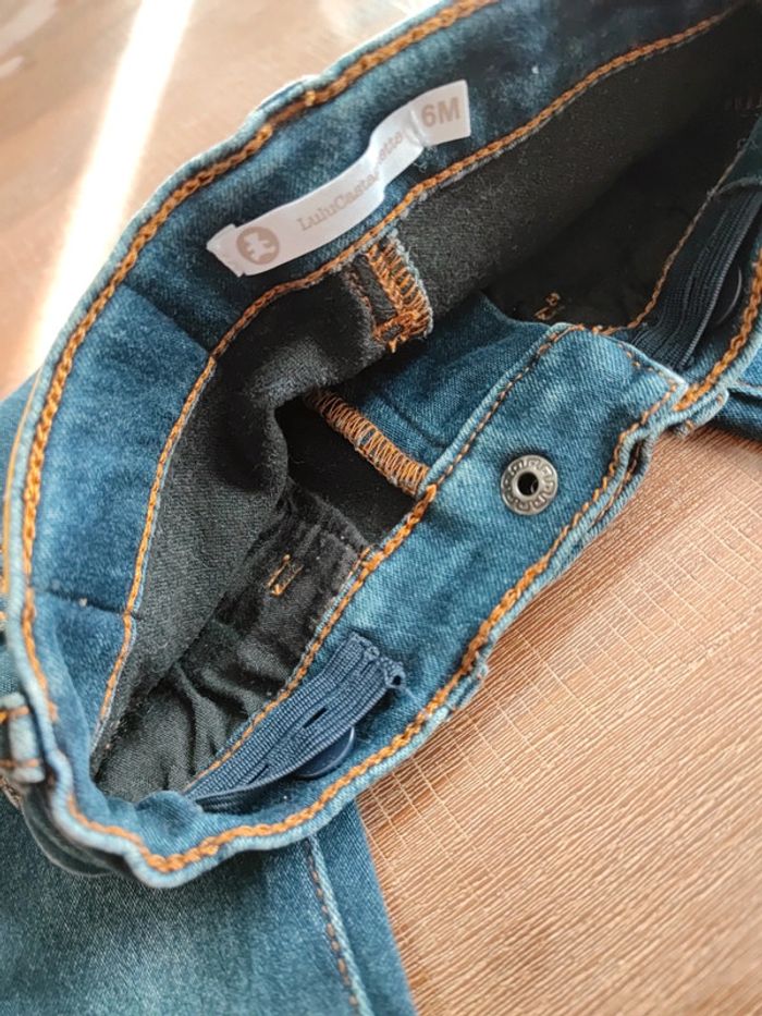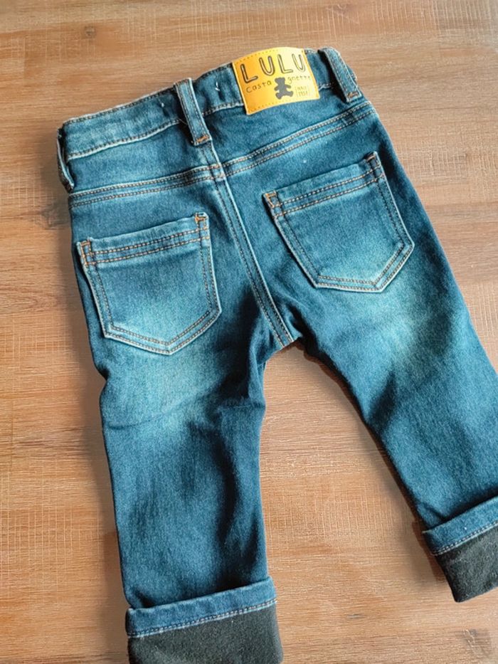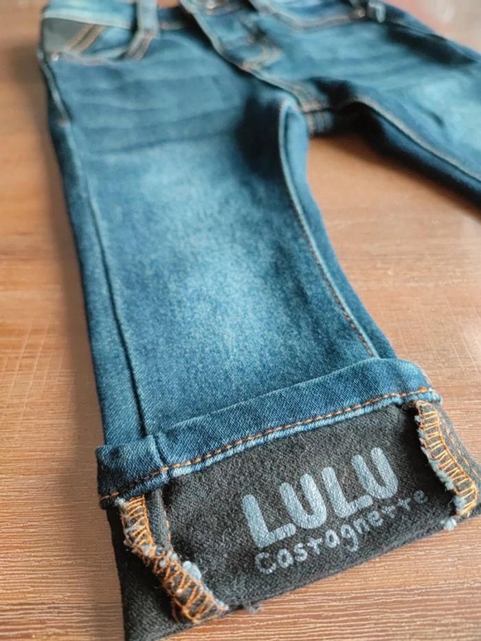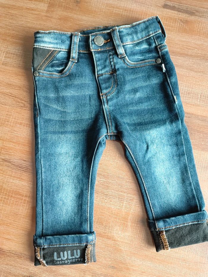 Jean slim, stretch confortable Bleu, aspect moderne Ourlet chevilles noirs avec inscription Lulu Castagnette Très joli porté Marque Lulu Castagnette Taille 6 mois Peu porté, état neuf #cyboulette44garcon6mois