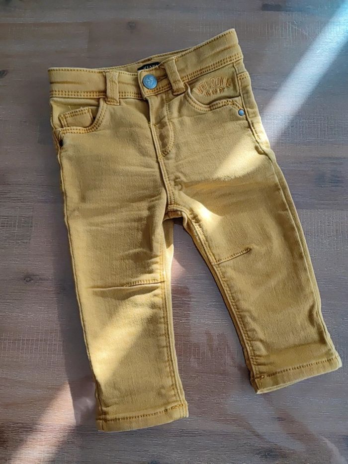 Jean slim, stretch confortable Jaune moutarde Taille ajustable Très peu porté Marque Kiabi Taille 6 mois #cyboulette44garcon6mois