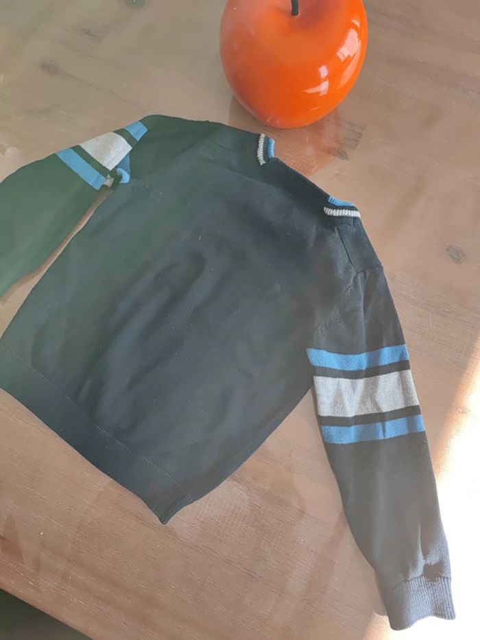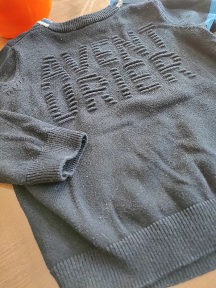 Pull Bleu marine Avec bandes gris clair et bleu sur bras et col Écriture ton sur ton "aventurier" en relief devant Très joli porté Marque Orchestra Taille 3 ans, 98cms Très bon état Envoi rapide #cyboulette44garcon36mois