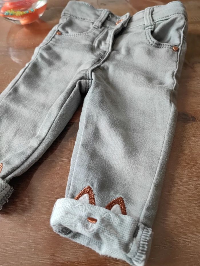 👖 Pantalon en jean stretch, matière douce 🌸 Couleur gris clair 🧷 Petits ourlets chevilles avec motif petit chat couleur cuivre 🧷 Bouton pression "petit chat" à la taille, et petits coeurs aux poches 🧷 Taille ajustable a l'intérieur 📌 Marque Orchestra 🚼 Taille 3 mois, 60cms ✅ Peu porté, état neuf ✅ Joli rendu ⭐ Envoi rapide, souvent les mardi, mercredi et vendredi 😉 #cyboulette44fille3mois