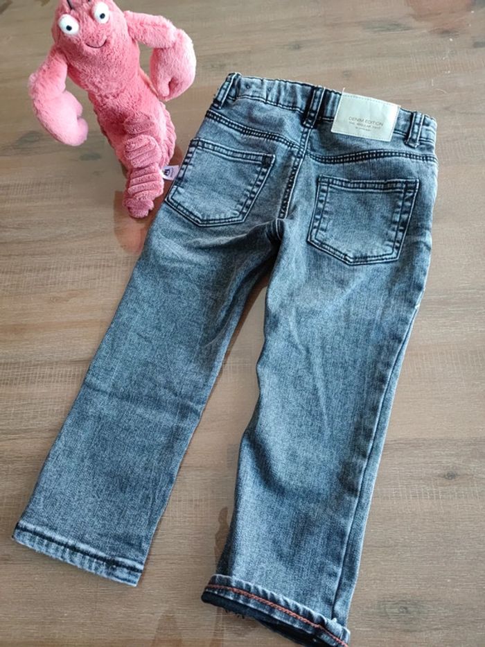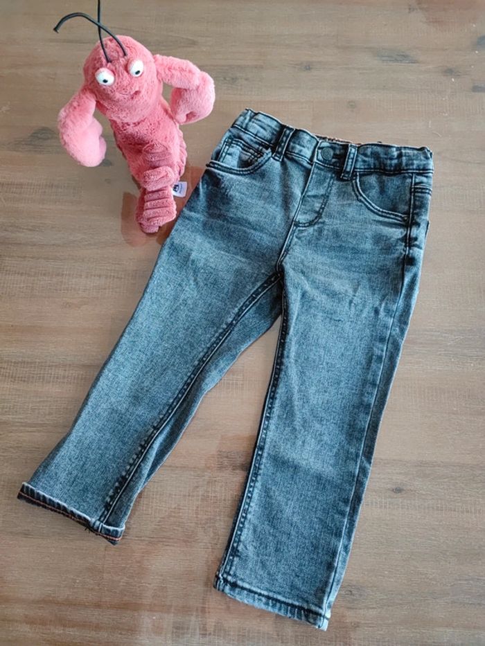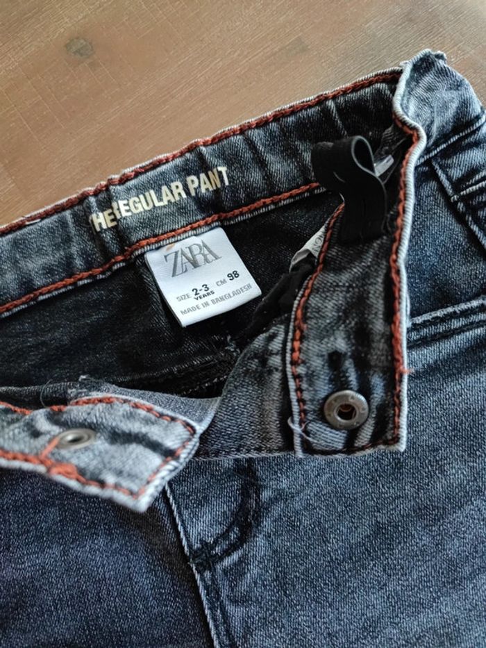 Pantalon jean Couleur gris foncé, aspect noir Matière stretch Taille ajustable a l'intérieur Petite couture orange au revers chevilles Marque Zara Taille 2-3ans , 98cms Peu porté, état neuf #cyboulette44garcon36mois