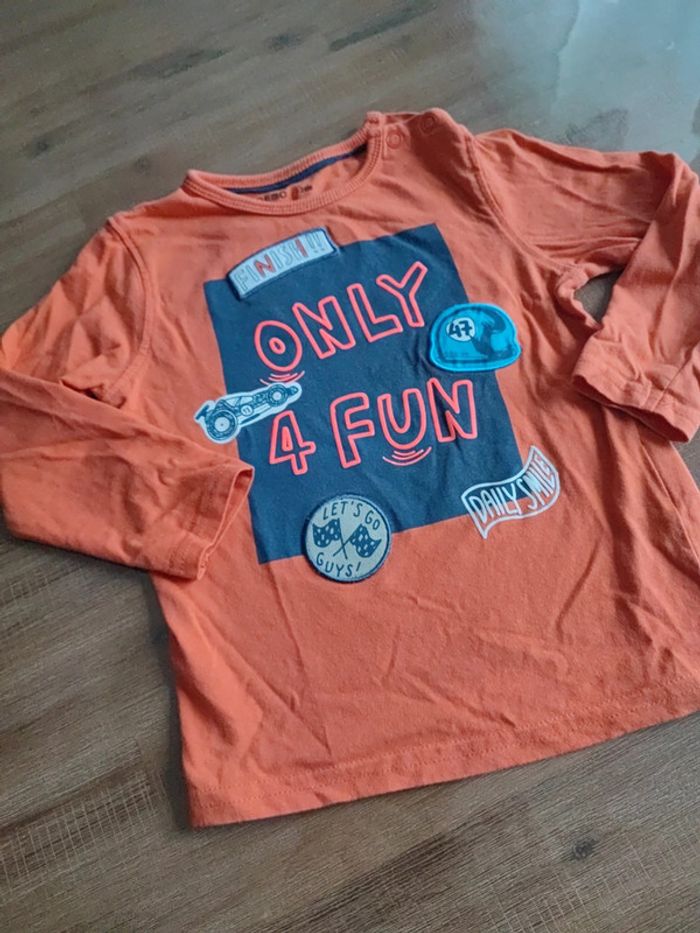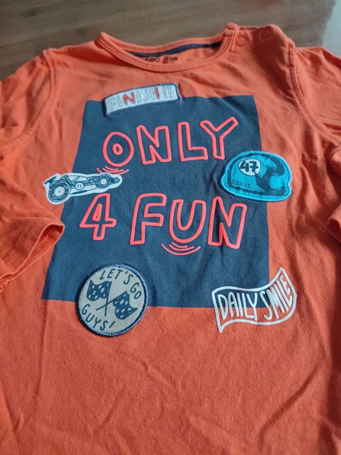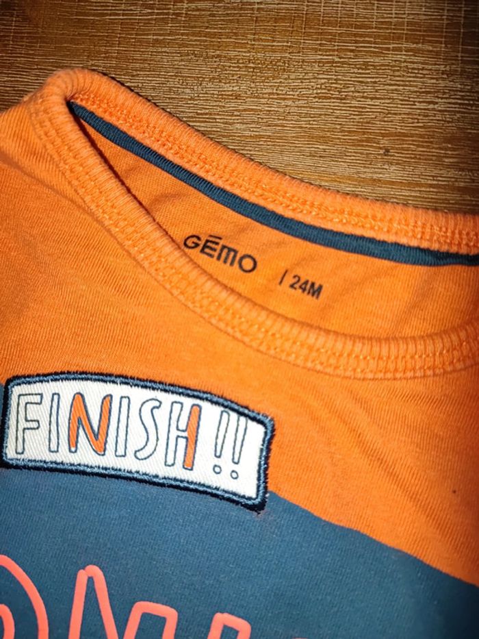 Tee-shirt manches longues Orange Avec inscription devant Bon état Taille 24mois Marque Gémo #cyboulette44garcon24mois