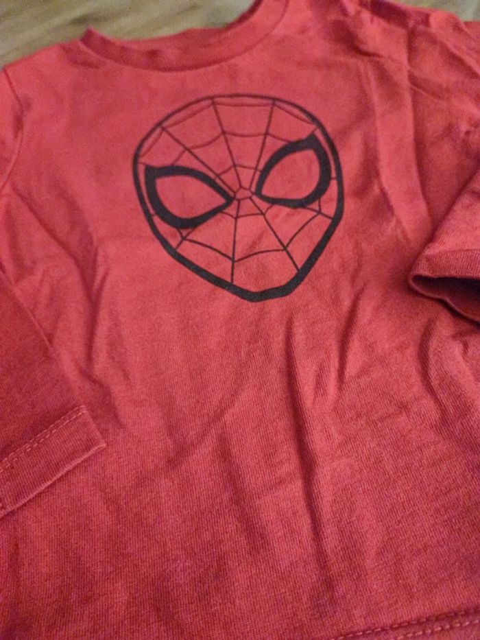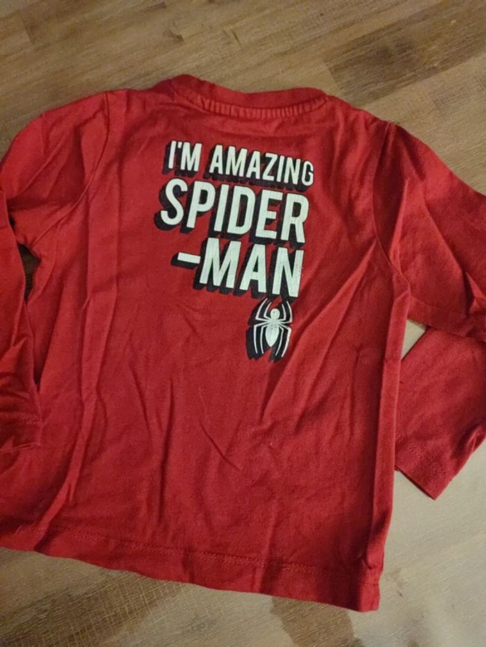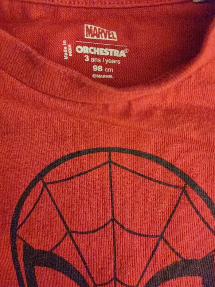 Tee-shirt manches longues Rouge avec motif tête spiderman et inscription dans le dos Marque orchestra Marvel, taille 3 ans 98cms Très bon état #cyboulette44garcon36mois