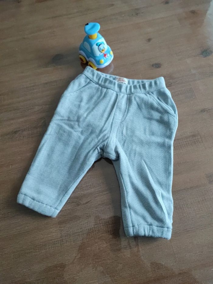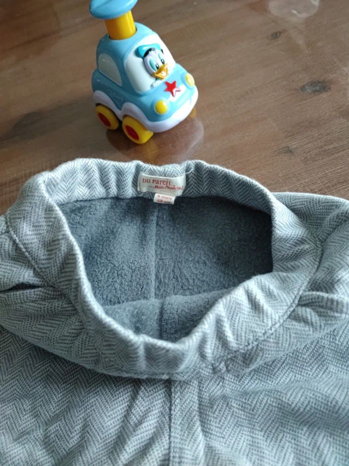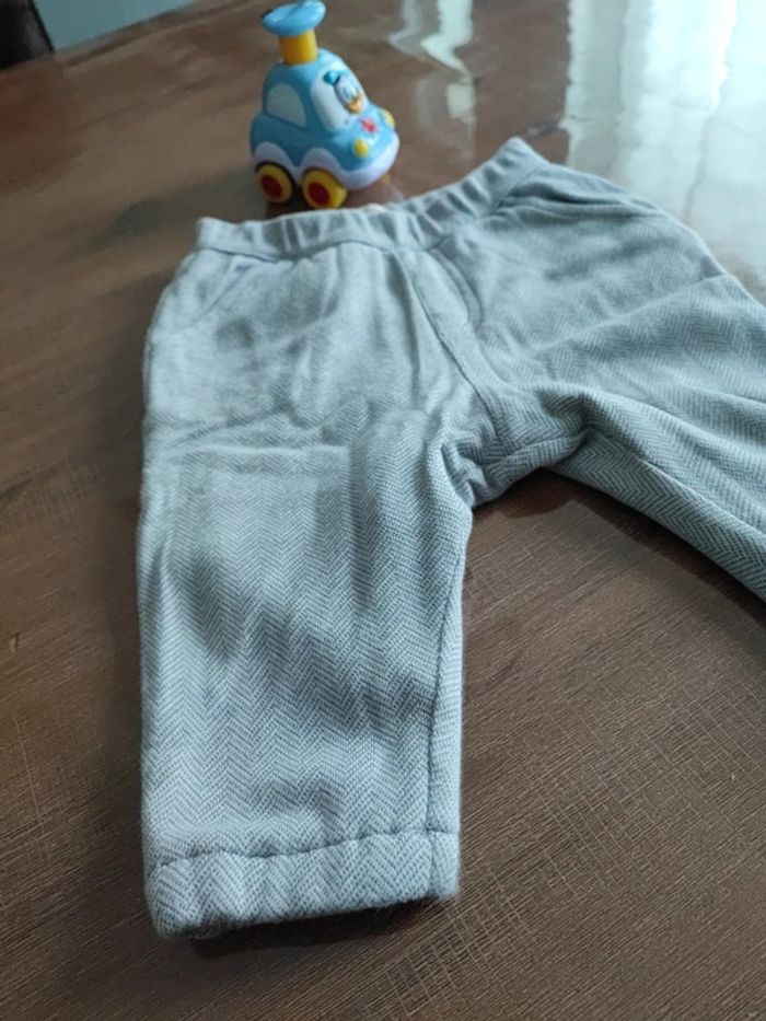 Bas de jogging gris clair, motifs chevrons, intérieur polaire, belle qualité, motif sur les fesses, porté 2 fois, très bon état, marque DPAM, taille 6 mois 68 cms **Pouvant être vendu avec le tee-shirt col roulé neuf de la meme collection, voir dressing ou me demander #cyboulette44garcon6mois