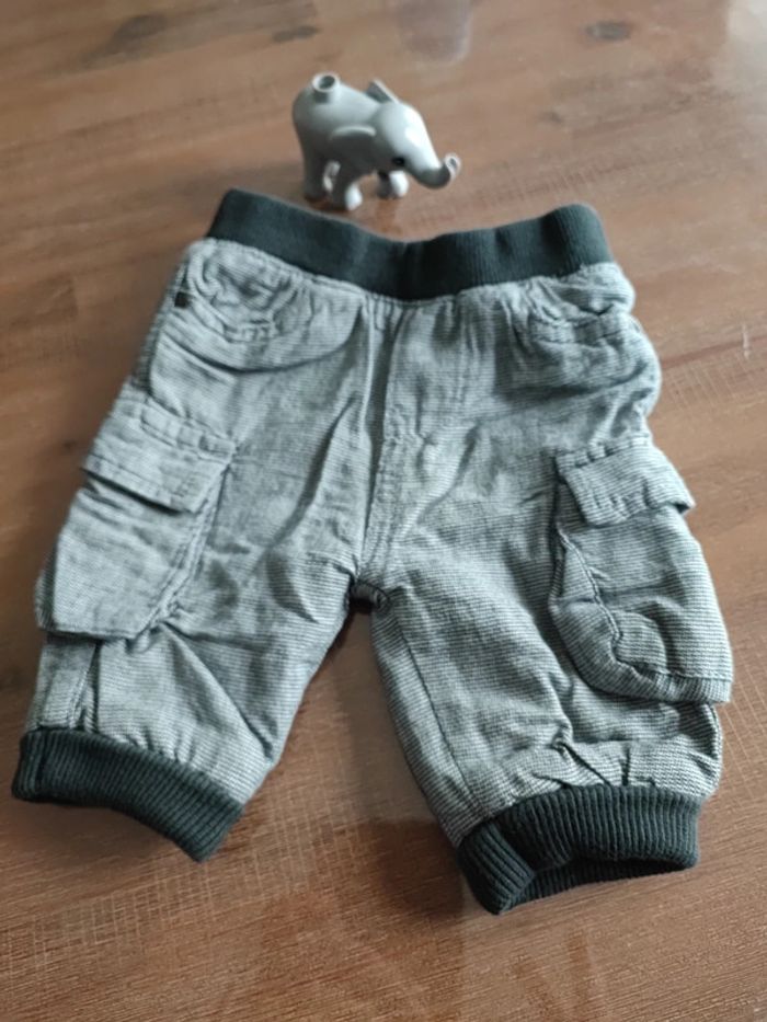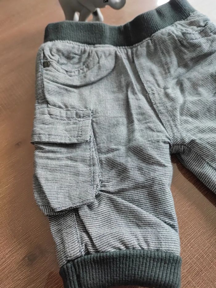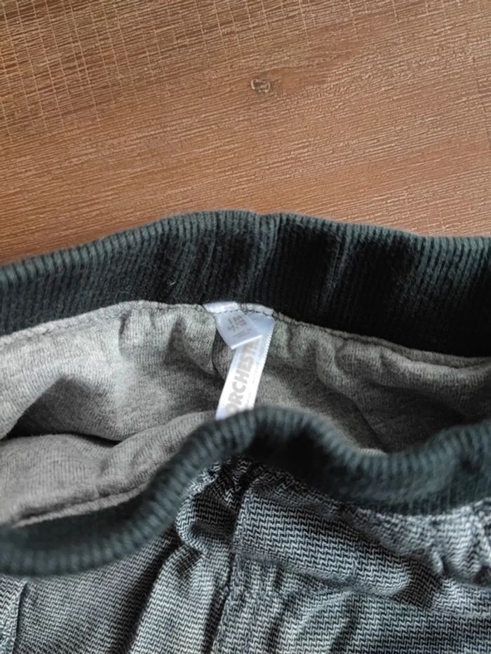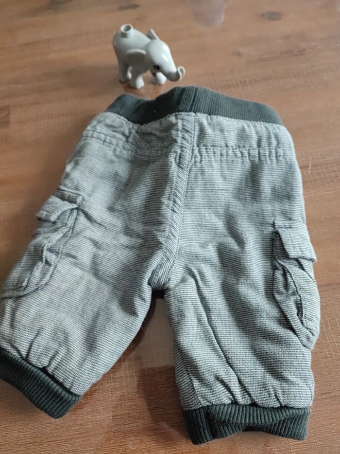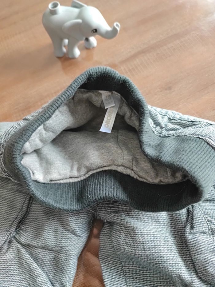 Petit pantalon gris, poches latérales, élastiques taille et chevilles gris foncés, intérieur doublé, porté 1 fois, état neuf, marque orchestra, taille 1 mois 54cms #cyboulette44garcon1mois