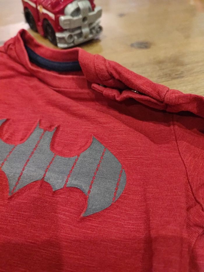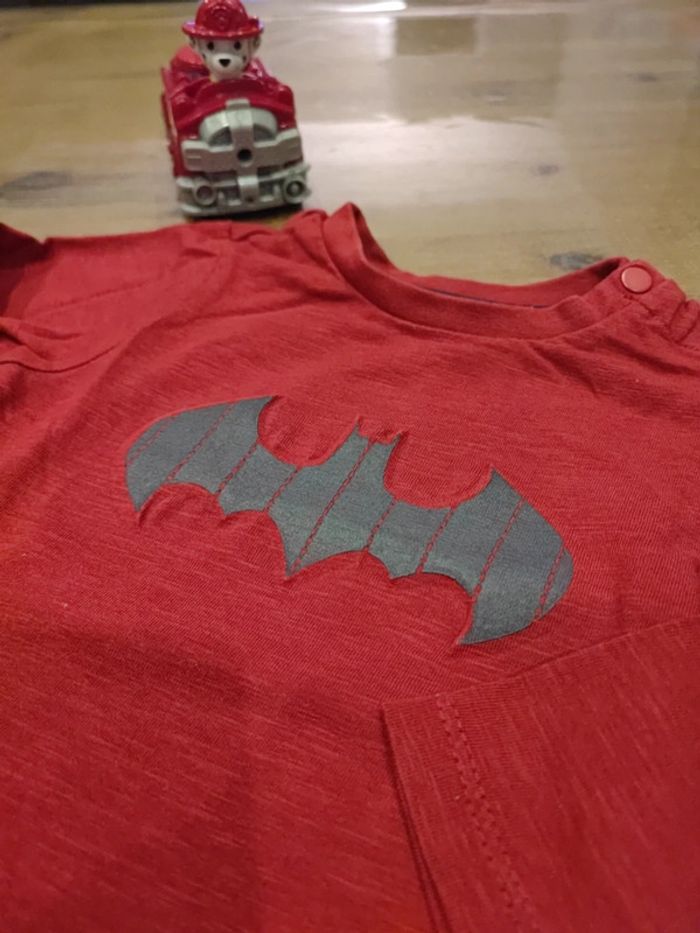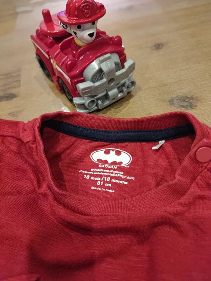 Tee shirt manches longues, rouge bordeaux, sigle Batman devant, 2 pressions épaules, très bon état, taille 18mois 81 cms #cyboulette44garcon18mois