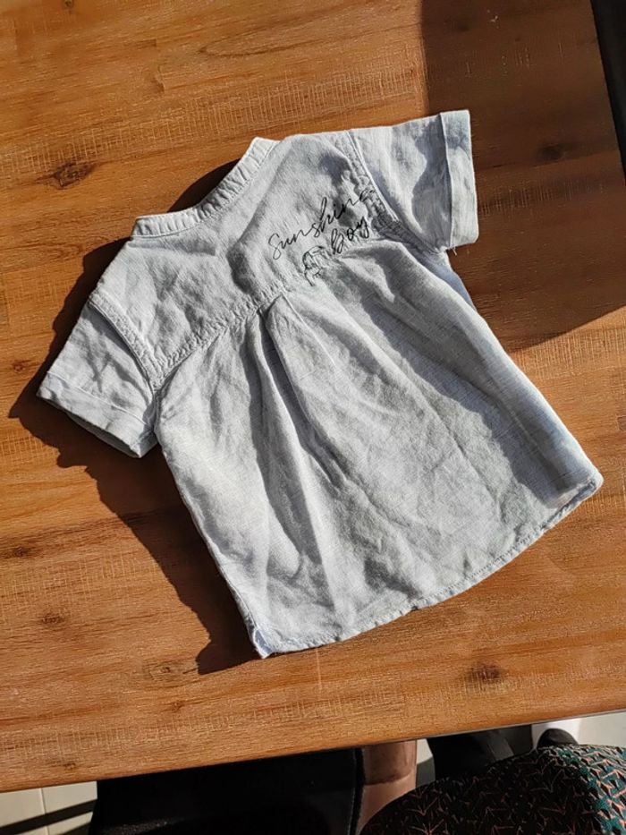 Chemise manches courtes, bleu ciel, inscription sunshine nous arrière épaule, taille 18 mois, jamais portée, état neuf #cyboulette44garcon18mois