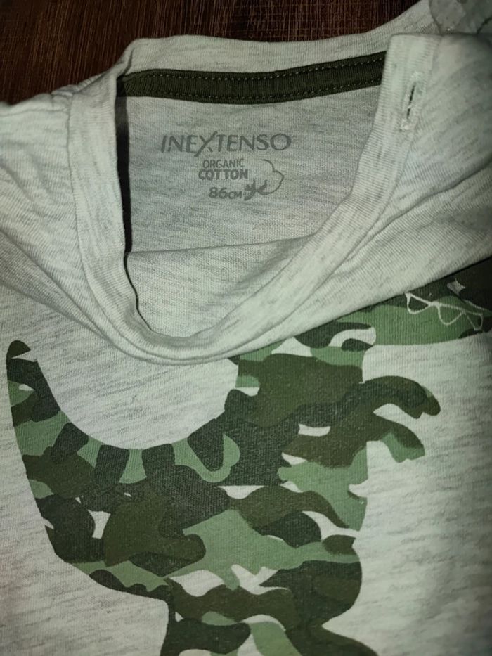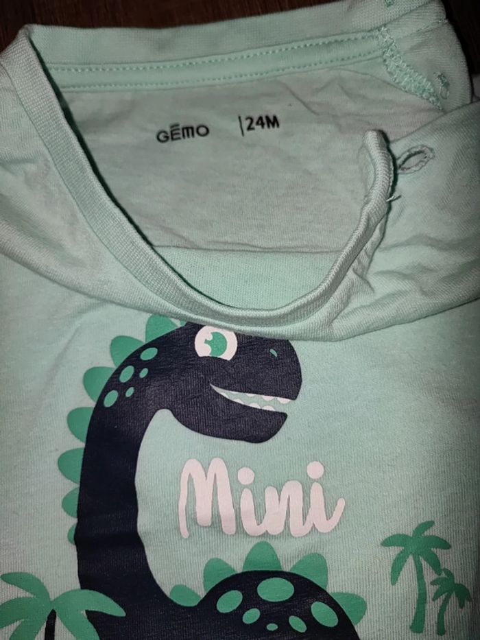 Tee shirt gris 18mois 86cms avec dinosaure kaki militaire, in extenso Tee shirt vert menthe 24mois avec dinosaure marine, Gémo Ouvertures boutons épaule Très bon etat #cyboulette44garcon18mois