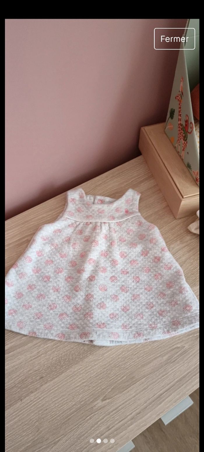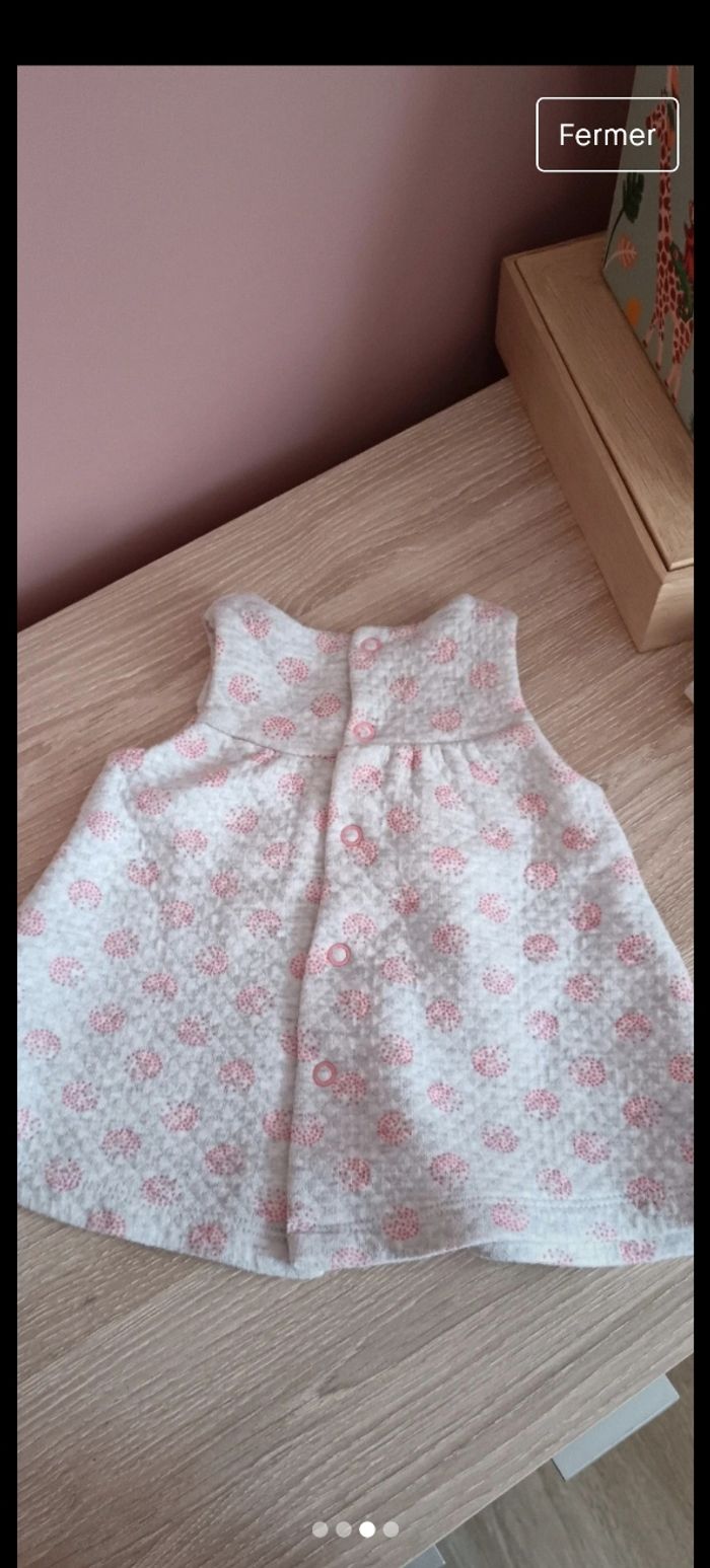 Robe 👗 épaisse de marque OBAIBI. Porté plusieurs fois . Pression à l'arrière de la robe Taille 1 mois , 53 cm