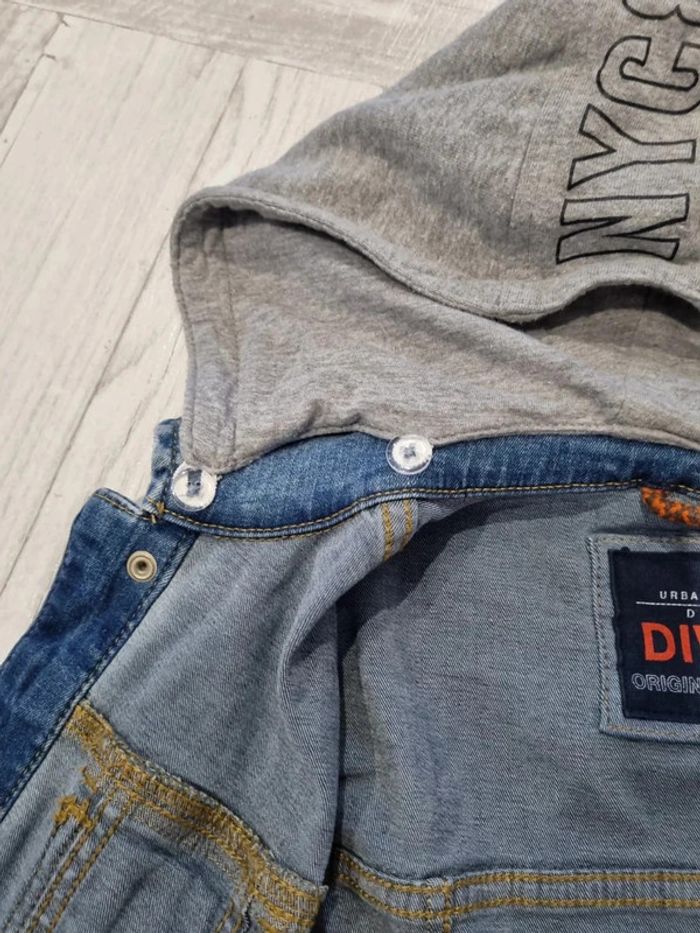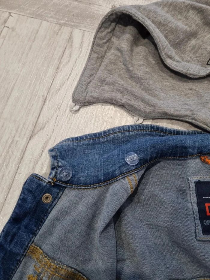 Veste en jeans Taille 10 ans (140 ans) La capuche peut se retirer Neuve (acheté trop petite.) Veste en denim compact et en molleton moelleux, dotée d’une capuche. Deux poches à rabat et deux poches latérales. Bordures de manche côtelées et brides boutonnables à l’ourlet. Longueur des manches: manches longues Bordures de manches : bordures de manches extensibles Fermeture avec un bouton À capuche Coupe : regular Fit, coupe classique Motif : chiné