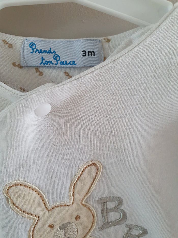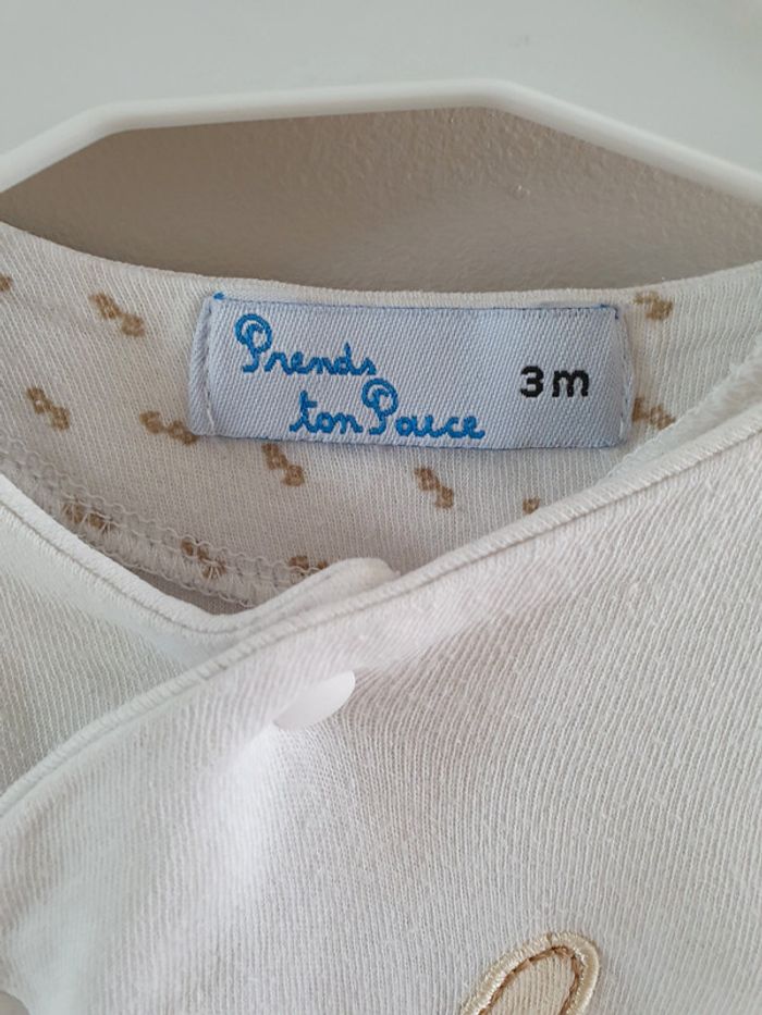 Pyjama en coton blanc taille 3 mois ouverture par le devant. Quelques petites traces jaunes très peu visibles voir photo du col #pyjamacoton Je vends d'autres articlez en taille 3 mois réduction sur les lots activée cliquez sur le lien ci-dessous pour voir mon 3 mois #cupcakoustroismois