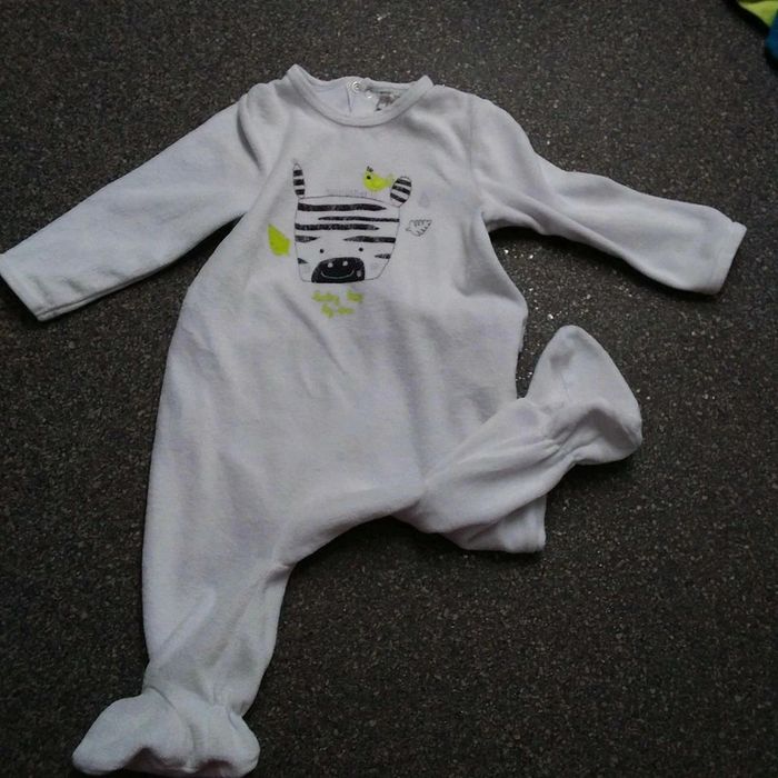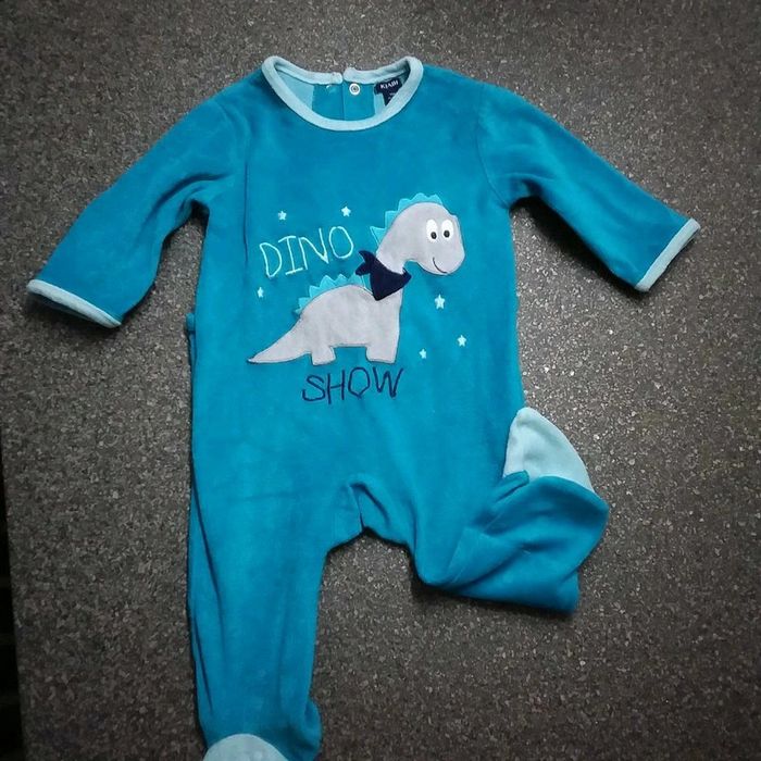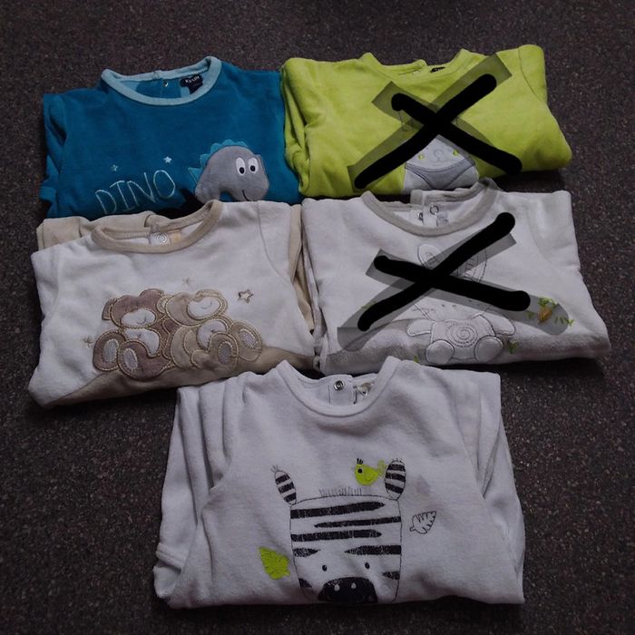 #9mois 2 kiabi 2 gemo 1 orchestra Le bleu a une légère usure au bout des pieds et le beige a une pression qui se détache (voir photos) pas de tâche ni d’autres défauts