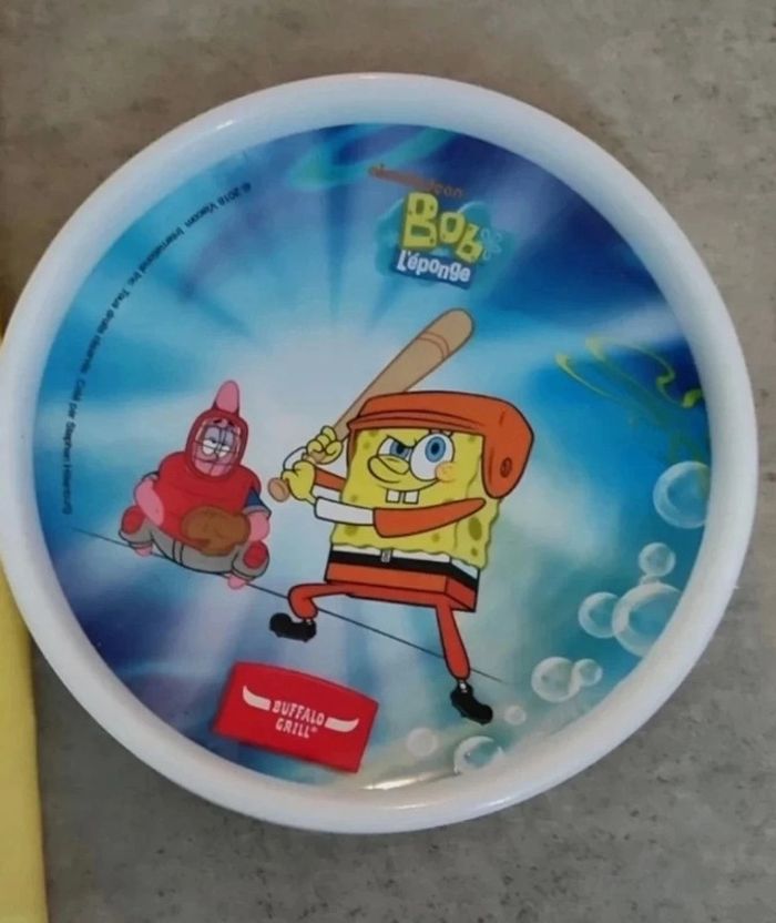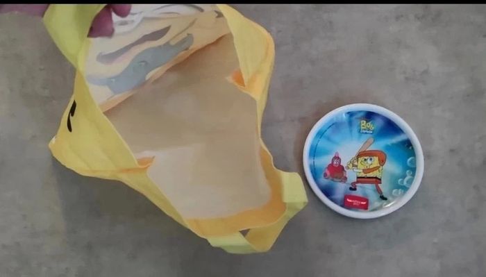 Sac moi moche et méchant et coupelle bob l'éponge ou assiette , peut servir pour les repas des tout petits ☺️ Le tout neuf sans étiquette, jamais utilisé.