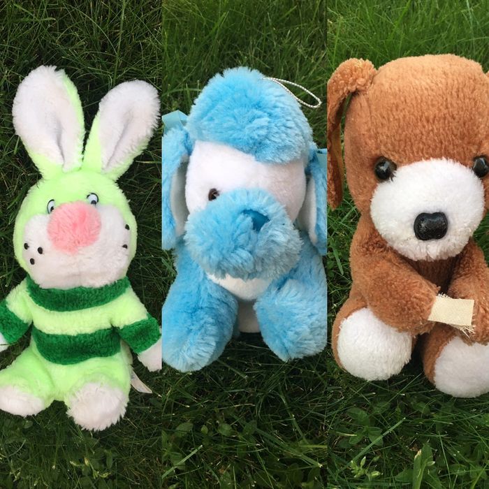 2 chiens et 1 lapin En très bon état Le chien marron est moins doux