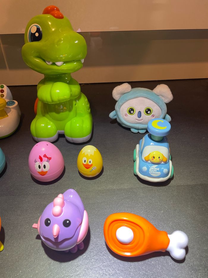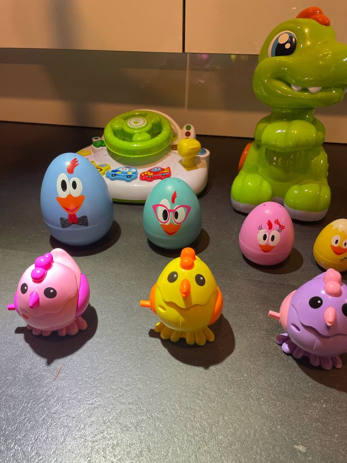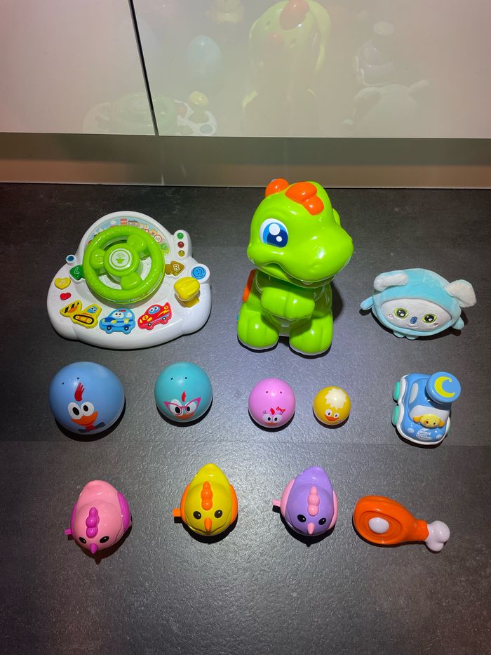 Lot de jouets - la famille Cot Cot - dinosaure - volant de voiture animé - etc