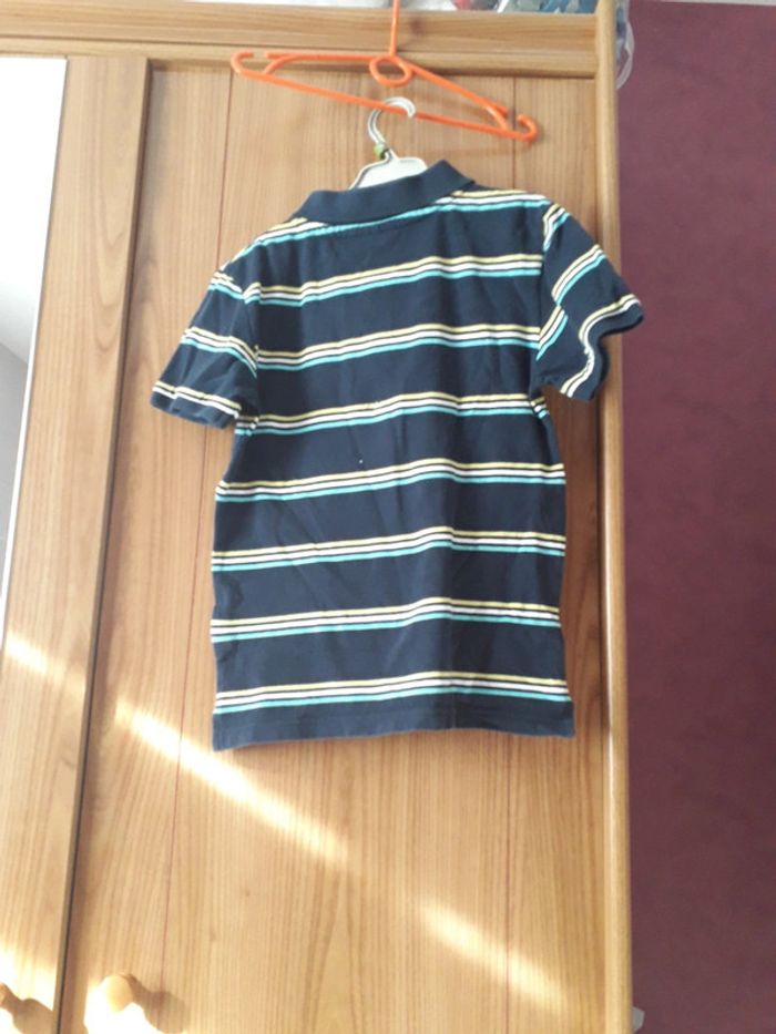 Très bon état Fond bleu Marine rayure turquoise blanc jaune