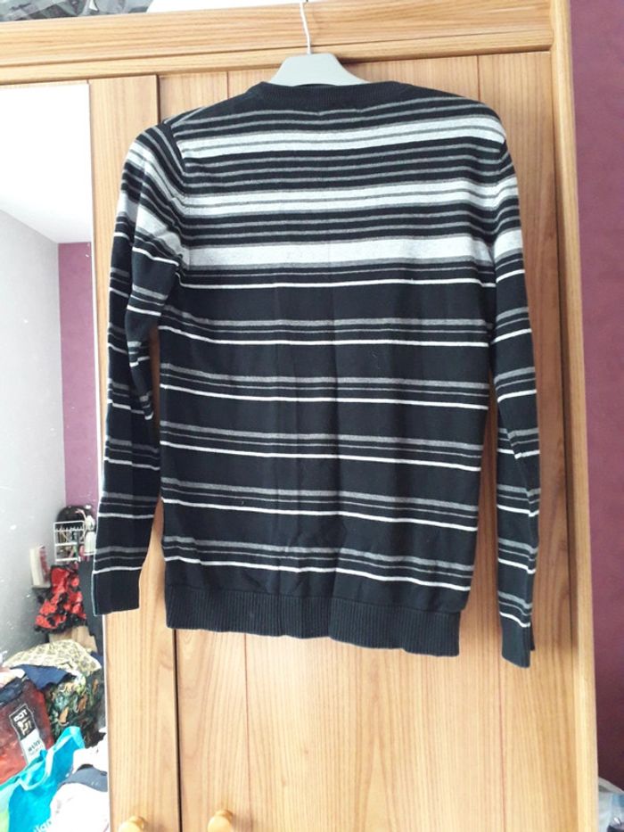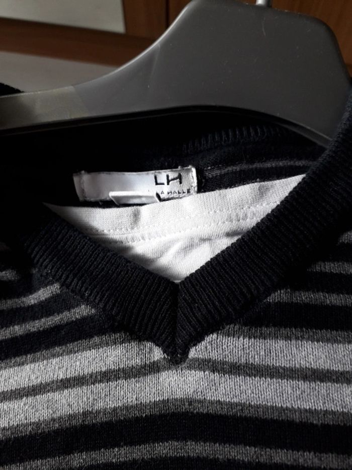 Tres bon état col en v rayé noir gris