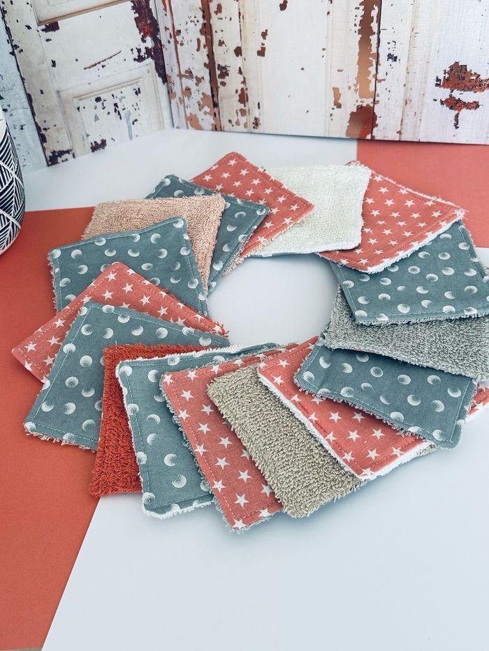 Lingette lavable démaquillante éponge en coton Carré de 9x9cm lot de 16 Si vous souhaitez plusieurs lingettes différentes je peux regrouper les annonces ainsi vous paierez moins de frais d’envoi Envoi rapide et soigné Toutes les lingettes sur @ateliersdisalingettes