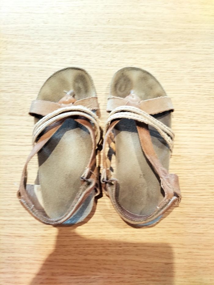 Nu-pieds cuir beige doré marron - 32 - Kickers - photo numéro 2