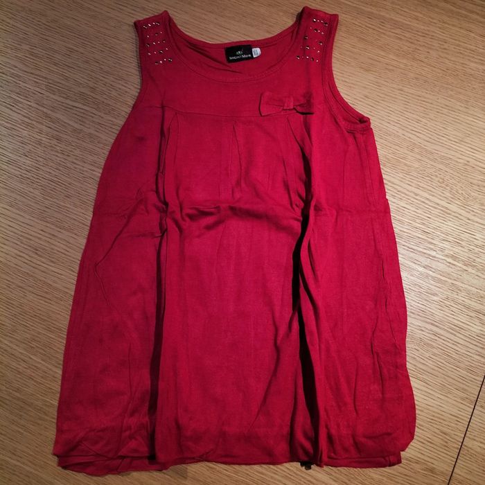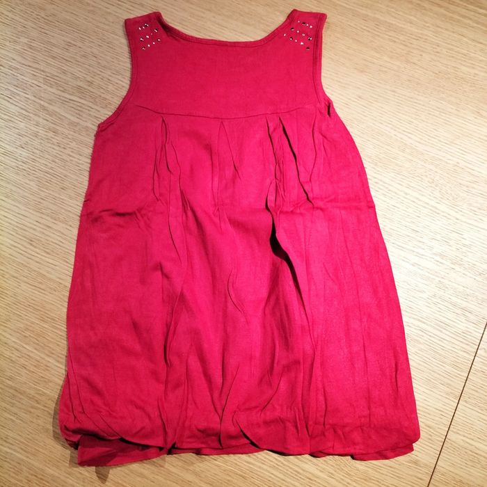 Robe rose en coton, taille 6 ans, de marque Sergent Major, détails brillants sur les bretelles larges, doublée, petit nœud sur le devant, forme resserrée légèrement vers le bas, pour un petit effet boule, en très bon état.