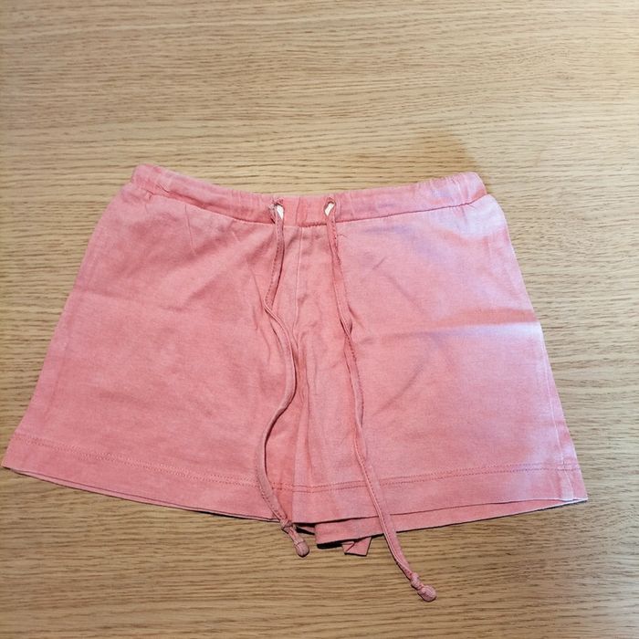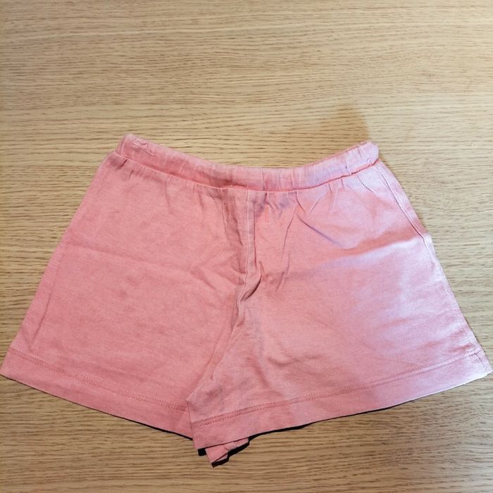 Pyjama court été, de marque Athéna, taille 6 ans, au rose avec écriture école saumon corail, plus inscription jolie fleur, bah saumon corail. Très bon état.