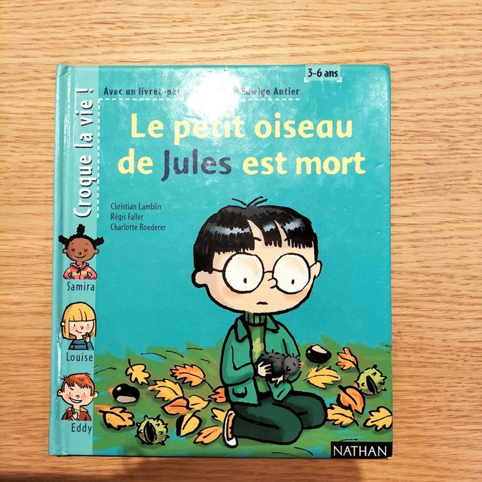 Livre Le petit oiseau de Jules est mort. Collection Croque la vie aux éditions Nathan. Livre enfant plus livré par an sur le sujet abordé